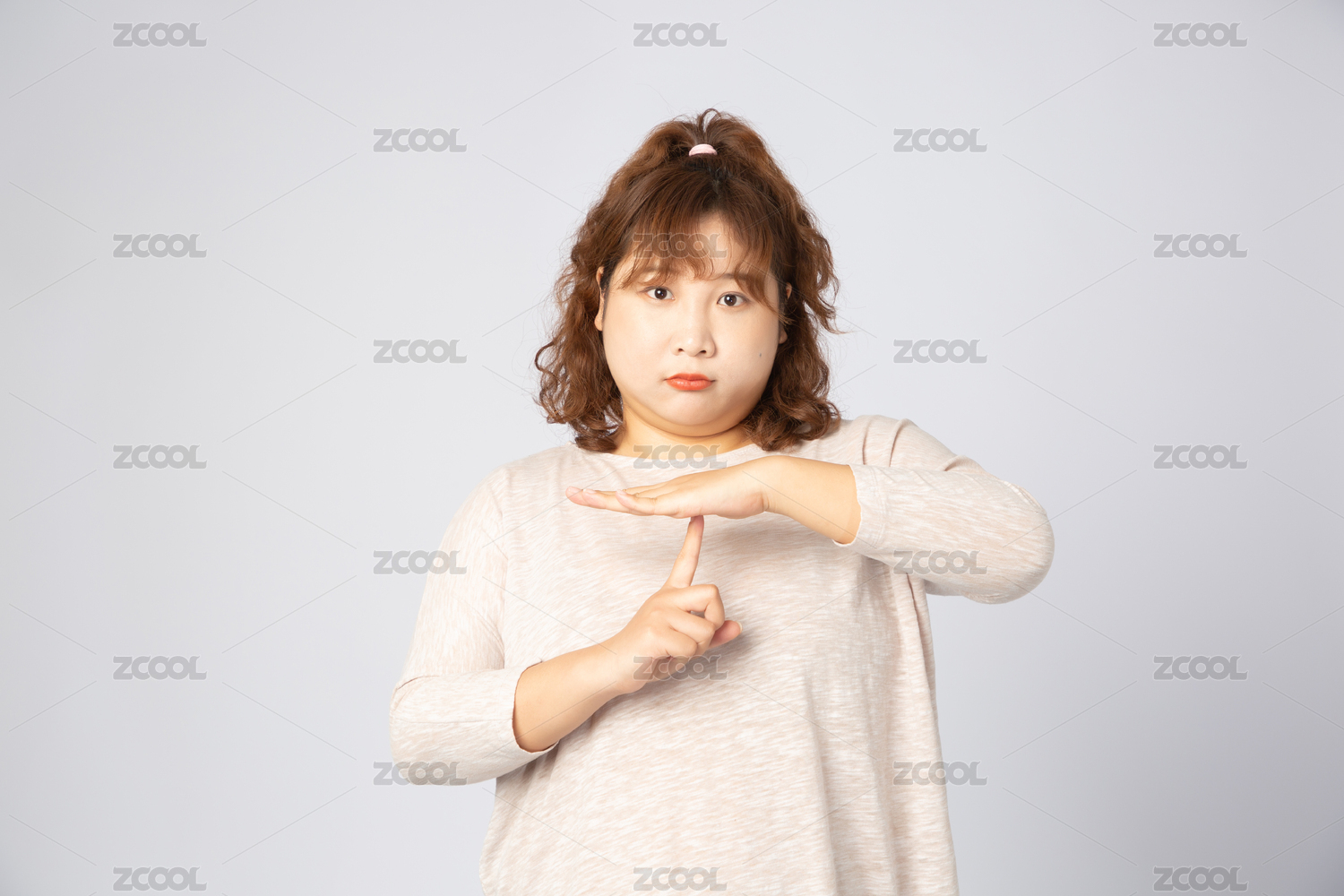 肥胖的亞洲女孩 停止禁止手勢特寫