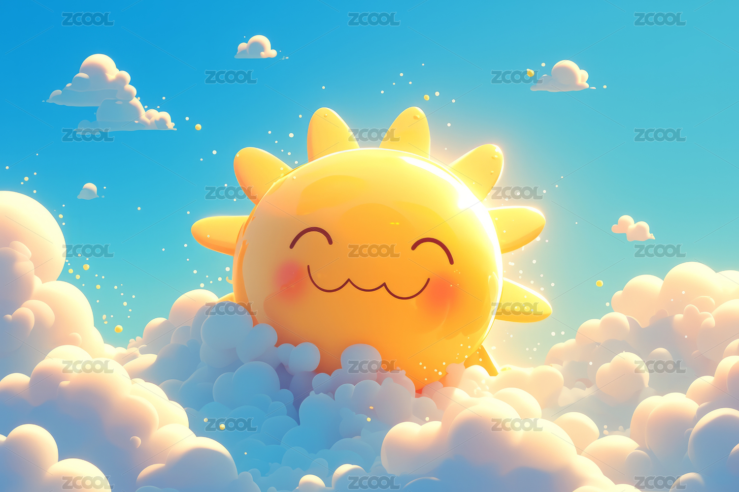 3D卡通可愛(ài)的云朵上的太陽(yáng)笑臉
