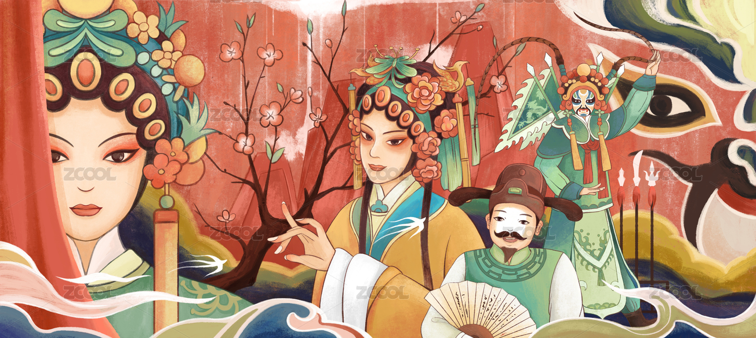卡通手繪民族戲曲人物武旦插畫