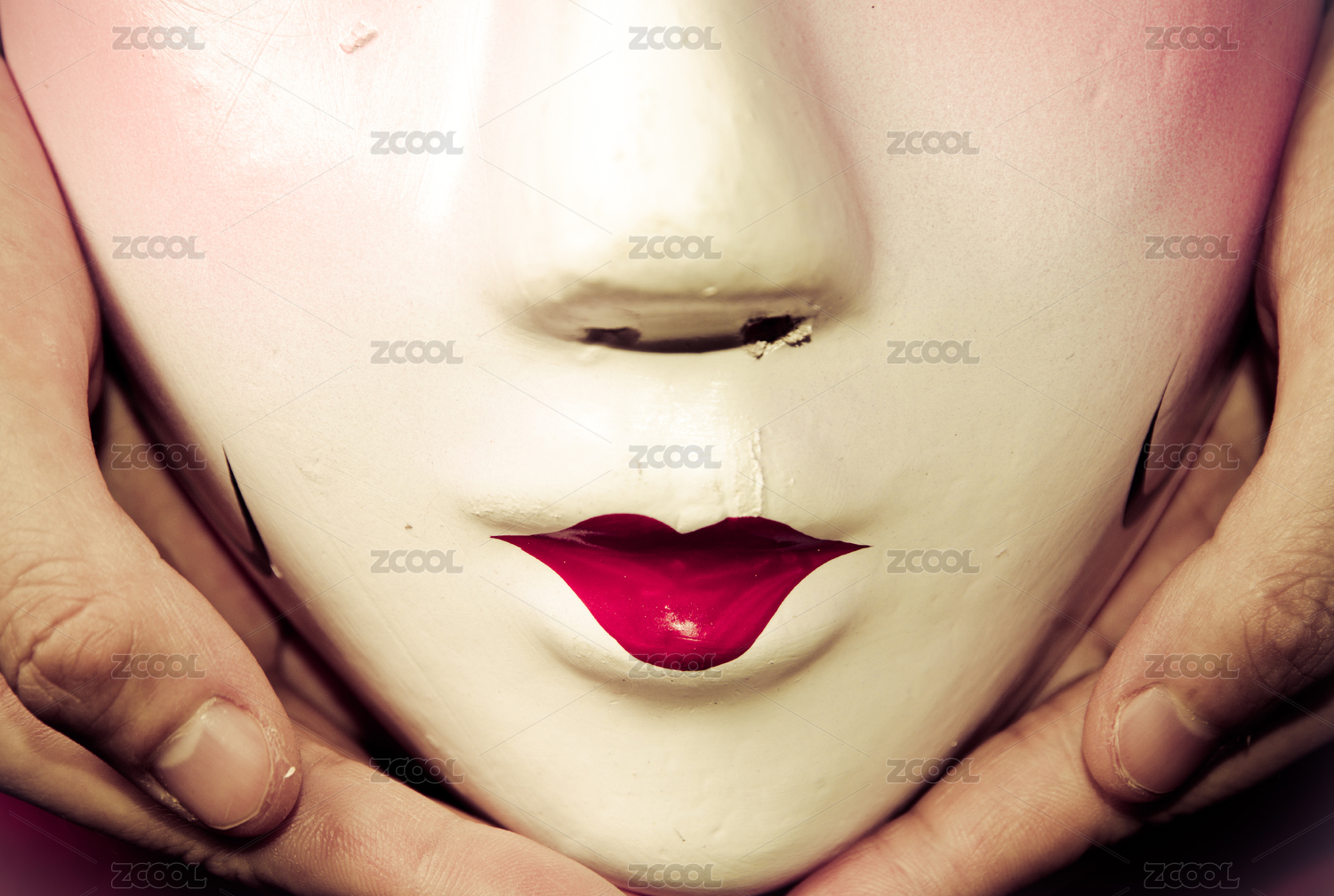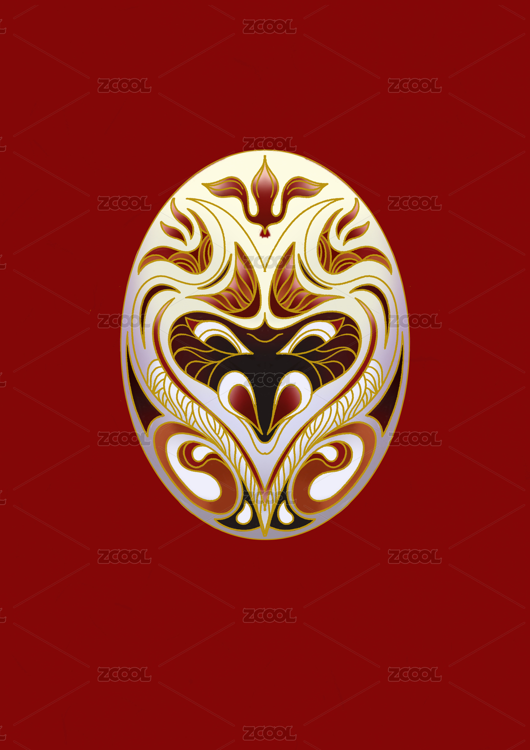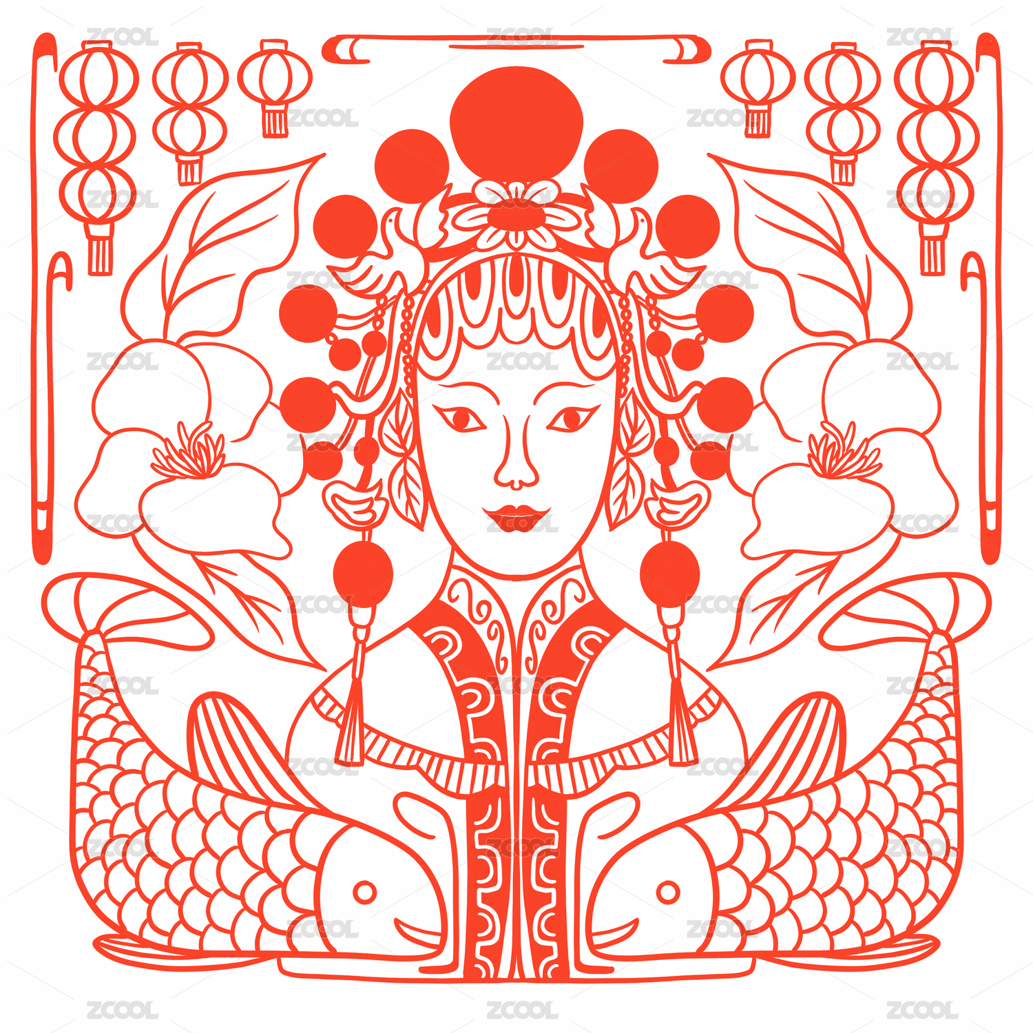 紅色的京劇女子臉譜和雙鯉魚對稱圖案