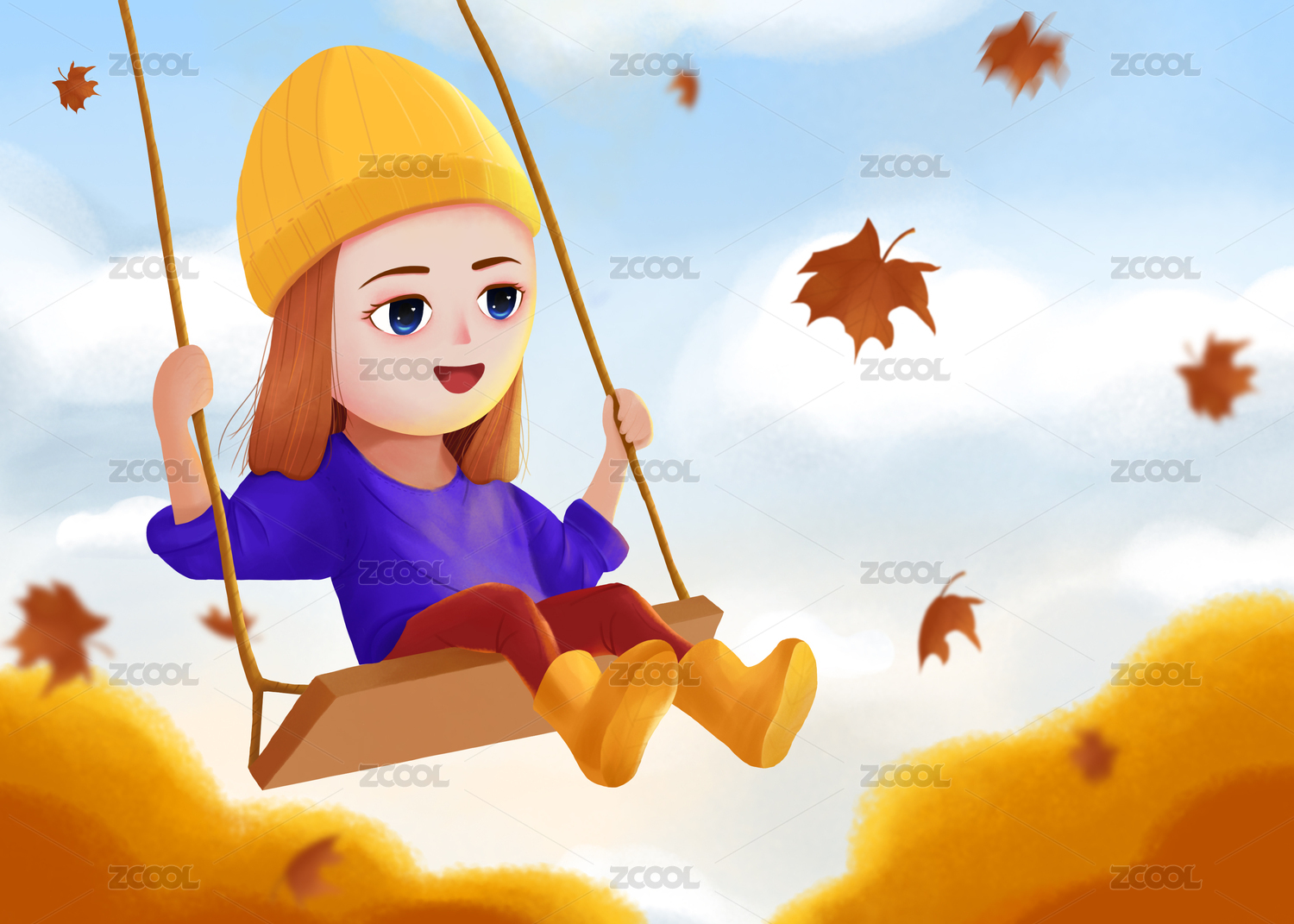 蕩秋千彈吉他的快樂男孩創(chuàng)意矢量插畫
