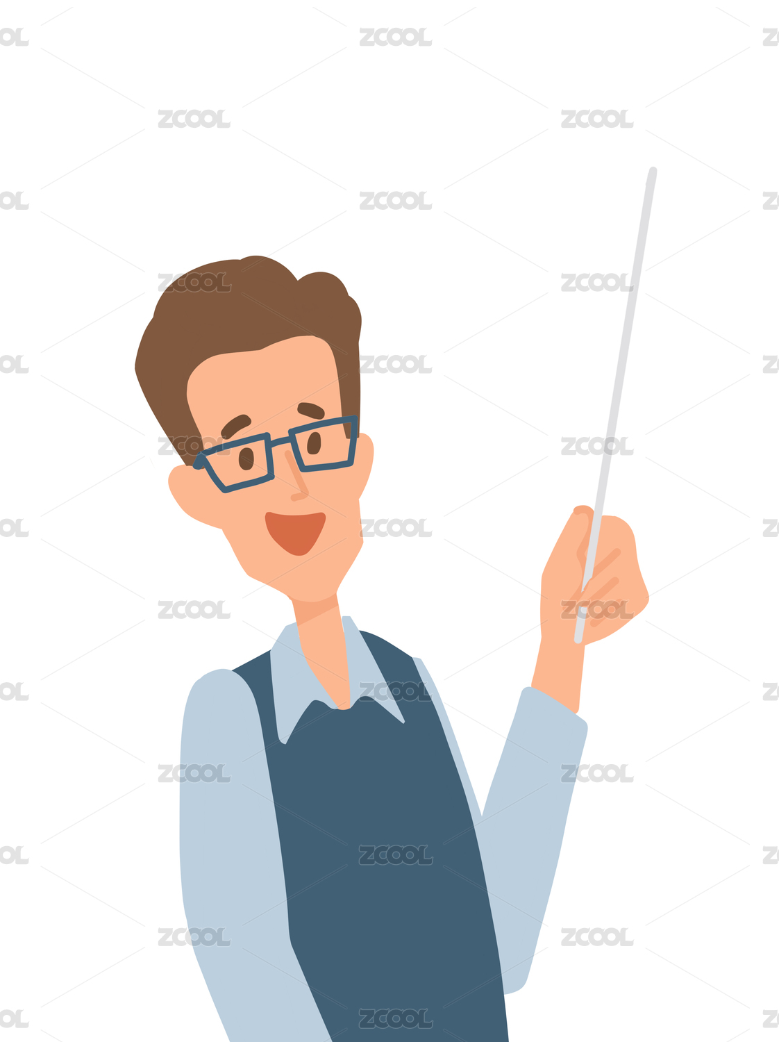 手繪卡通插畫(huà)手里拿著教學(xué)棍做指示的男老師