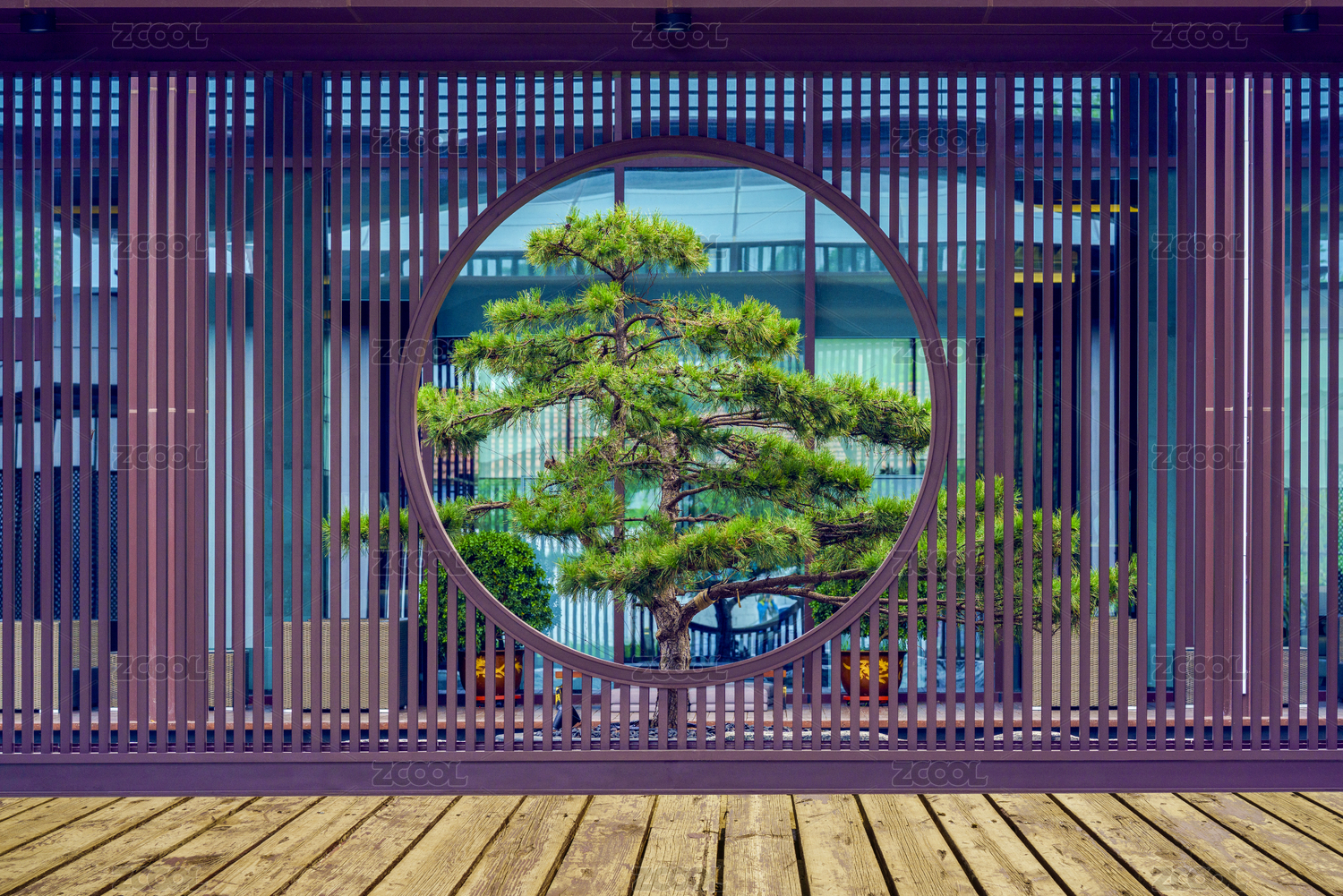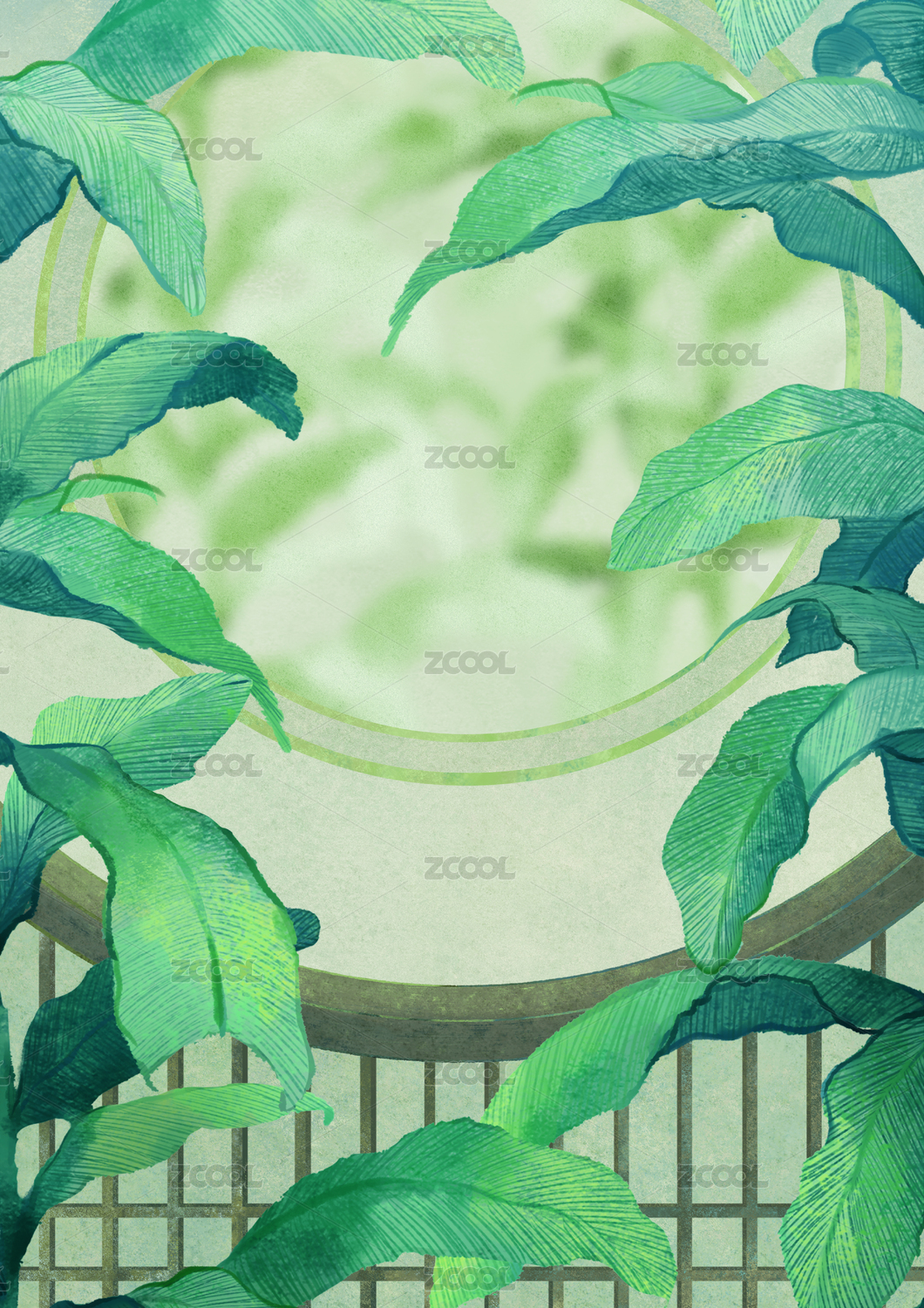 芭蕉樹葉子屏風(fēng)隔斷門框窗戶中式傳統(tǒng)建筑