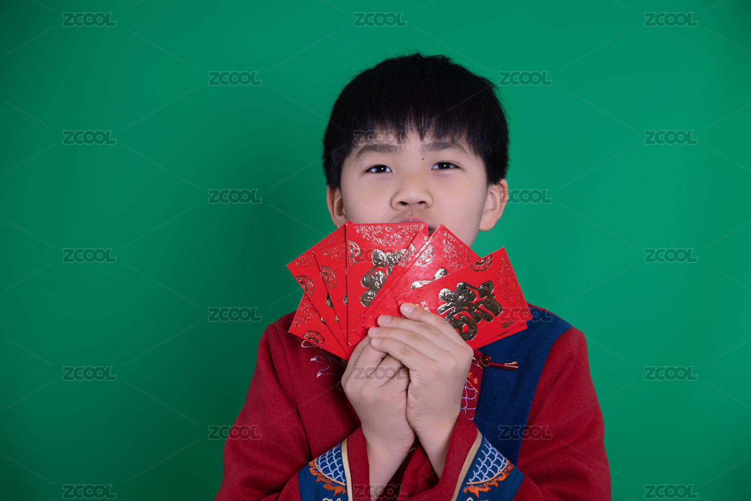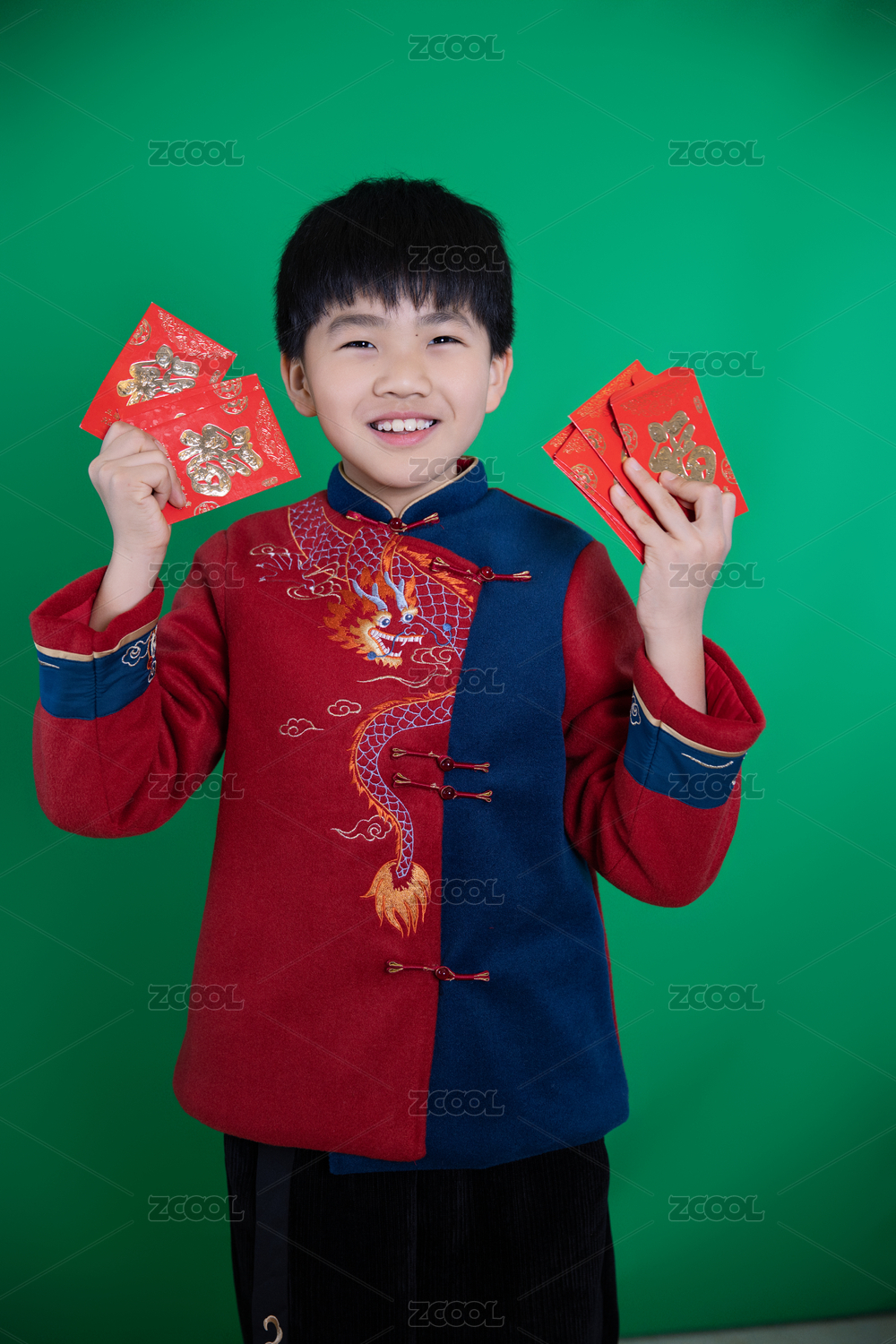 中國(guó)小男孩春節(jié)恭賀新年拜年綠幕摳像