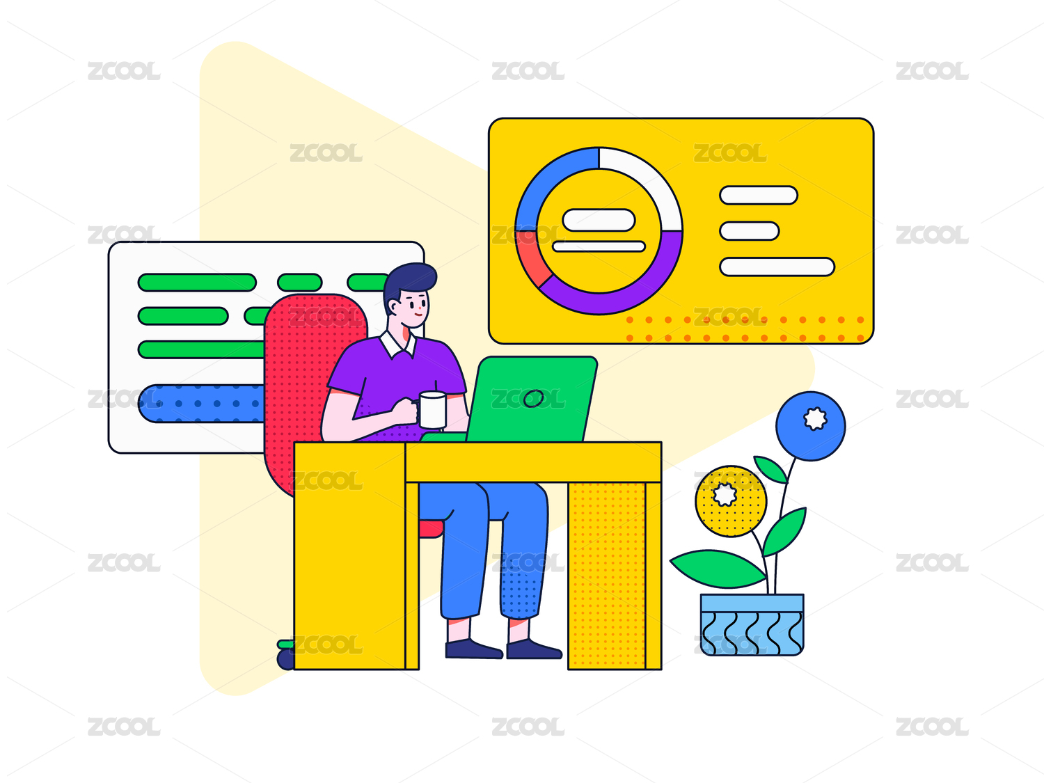 商務職場匯報扁平矢量插畫