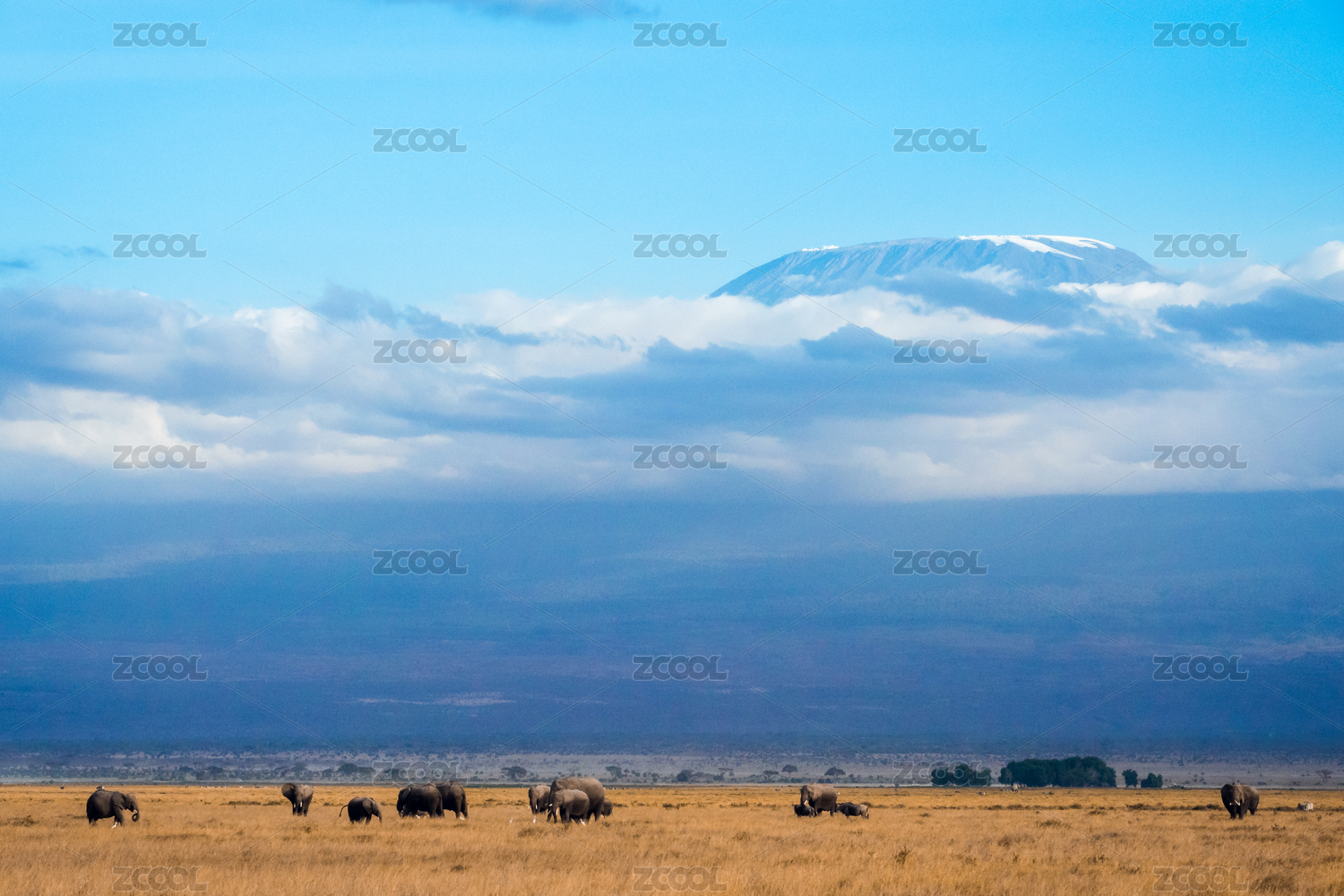 非洲肯尼亞安波塞利乞力馬扎羅山下的象群
