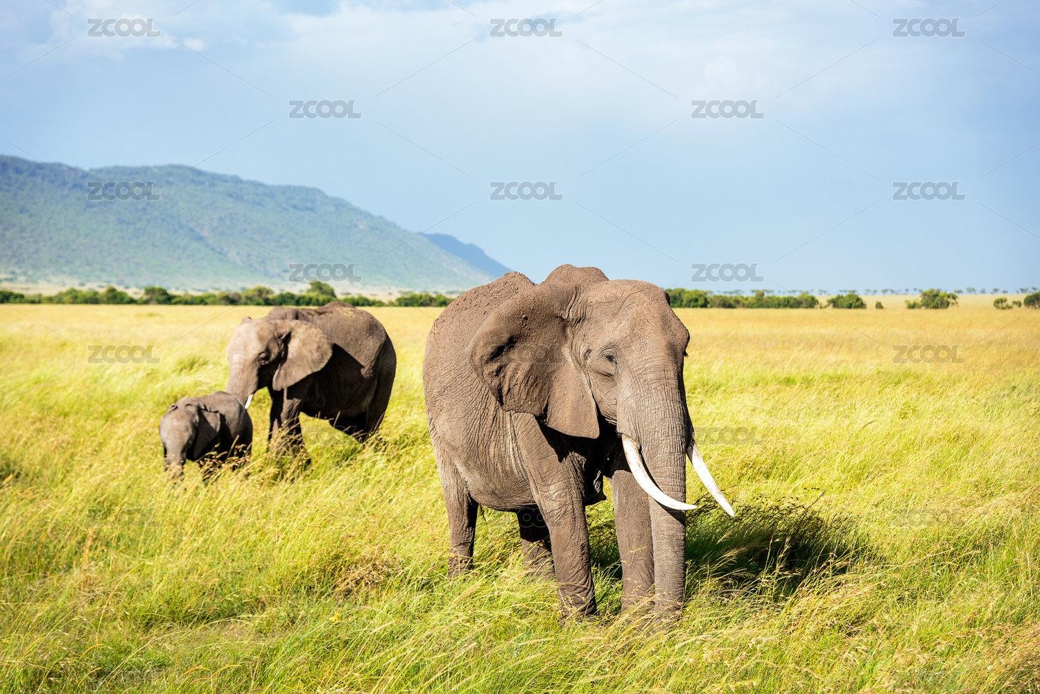 肯尼亞馬塞馬國(guó)家公園中的象群行走在草原上