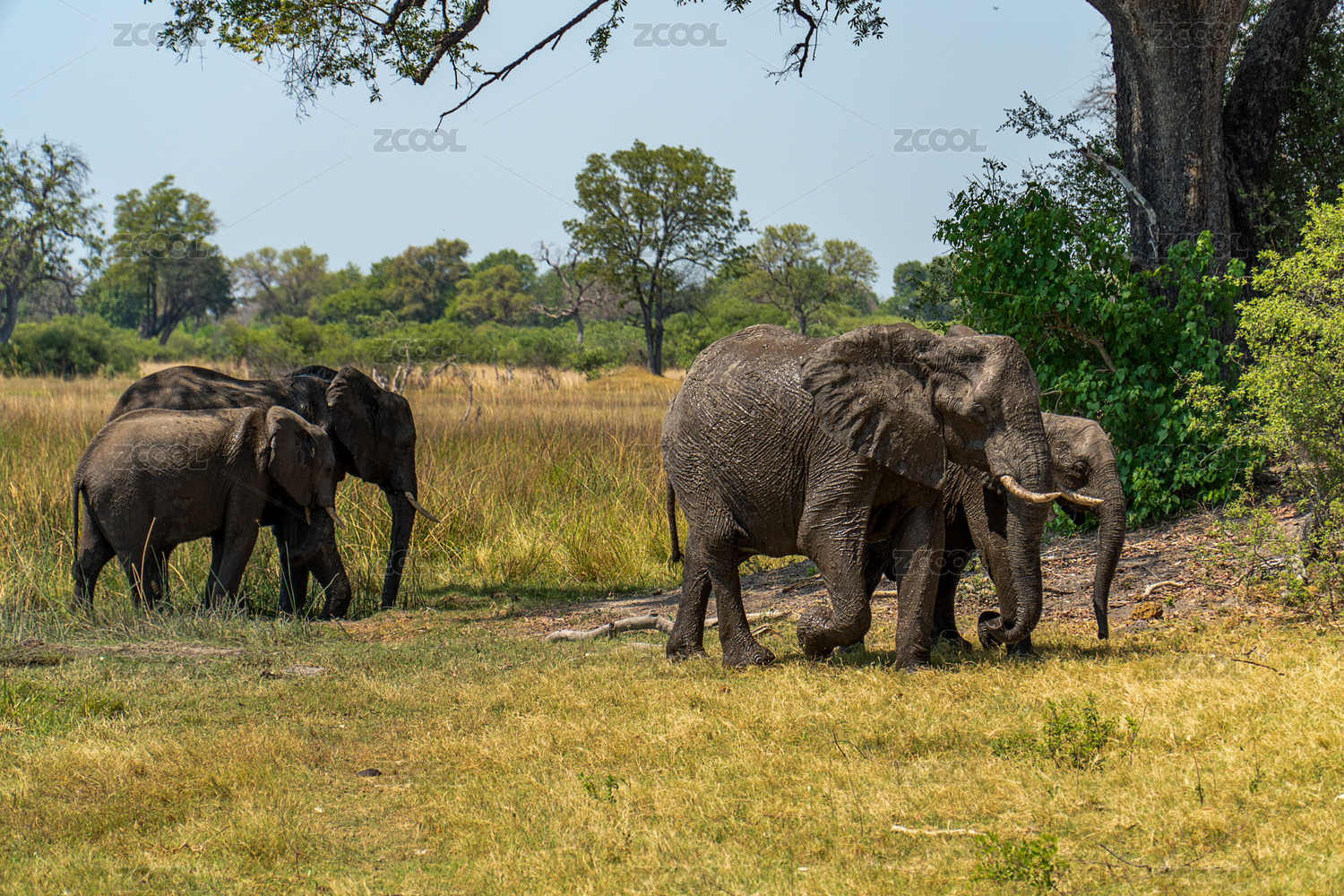 非洲博茨瓦納奧卡萬(wàn)戈樹(shù)下的象群