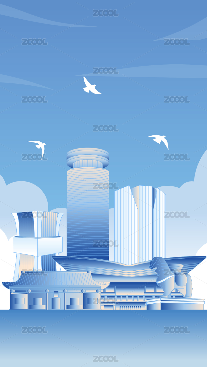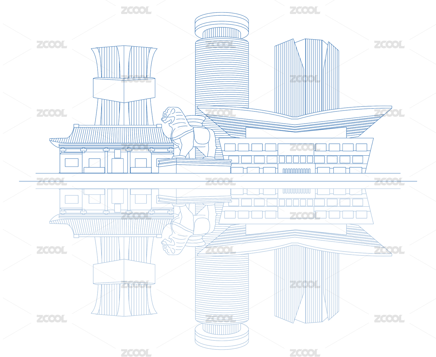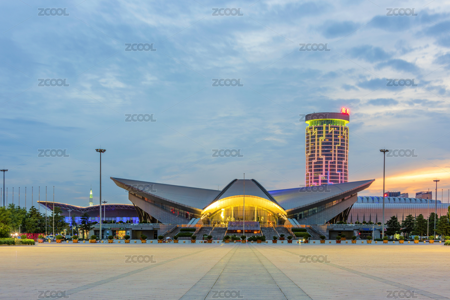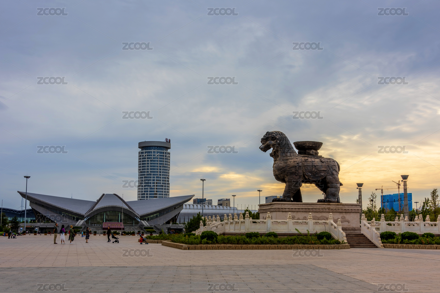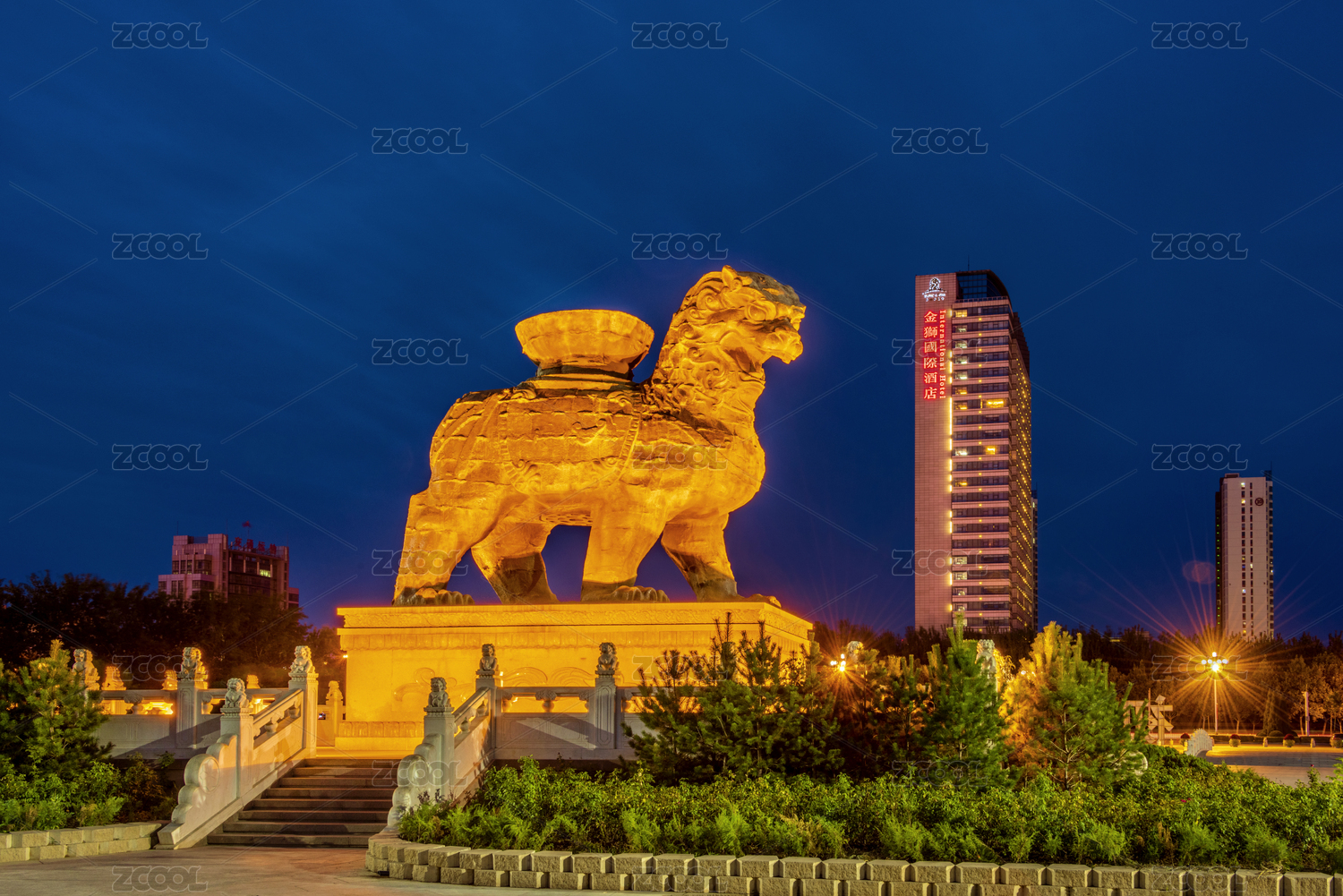 中國河北省滄州市獅城公園鐵獅子雕塑夜景