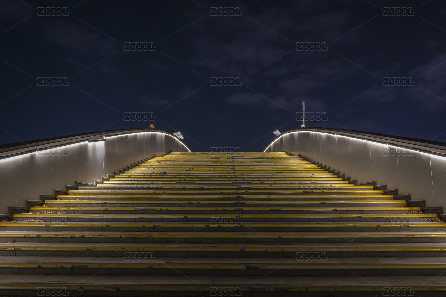 河北滄州夜晚藍(lán)天白云下的運(yùn)河步行橋