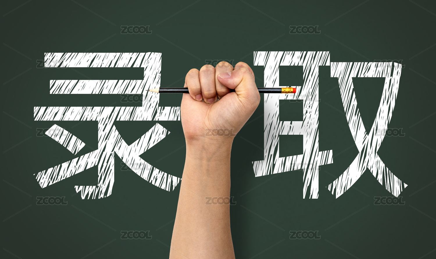 手握鉛筆背后的黑板寫著錄取
