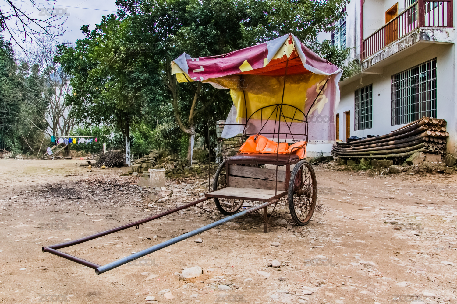 江西省鷹潭市龍虎山正一觀古村人力拖車交通工具環(huán)境景觀