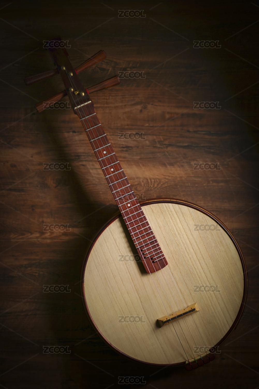 放在桌子上的中國(guó)傳統(tǒng)樂(lè)器花梨木中阮
