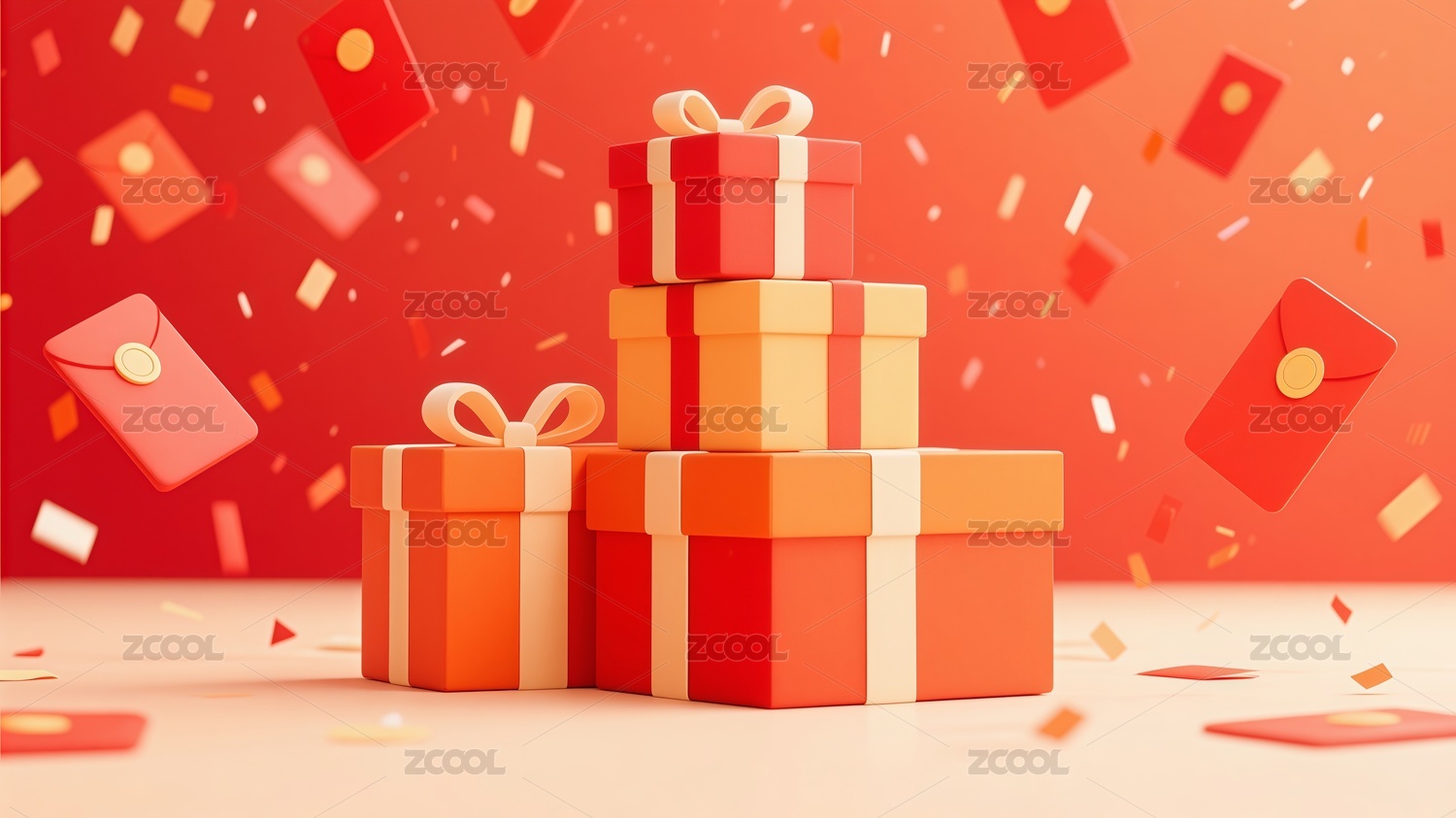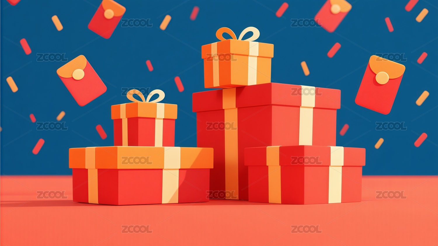 扁平風(fēng)格節(jié)日禮物紅包插畫
