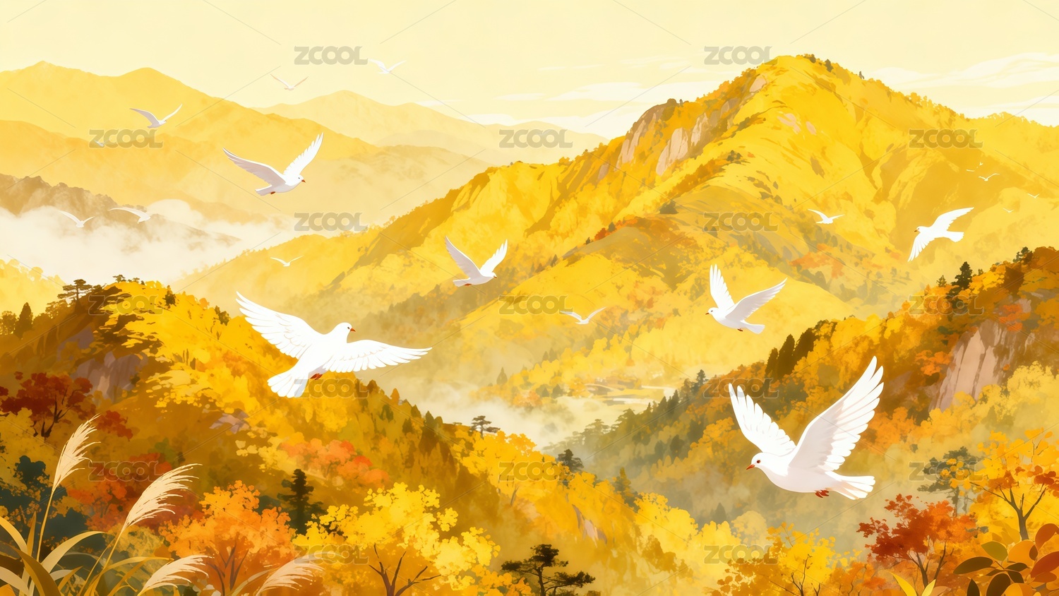 扁平風(fēng)重陽節(jié)白鴿秋景插畫