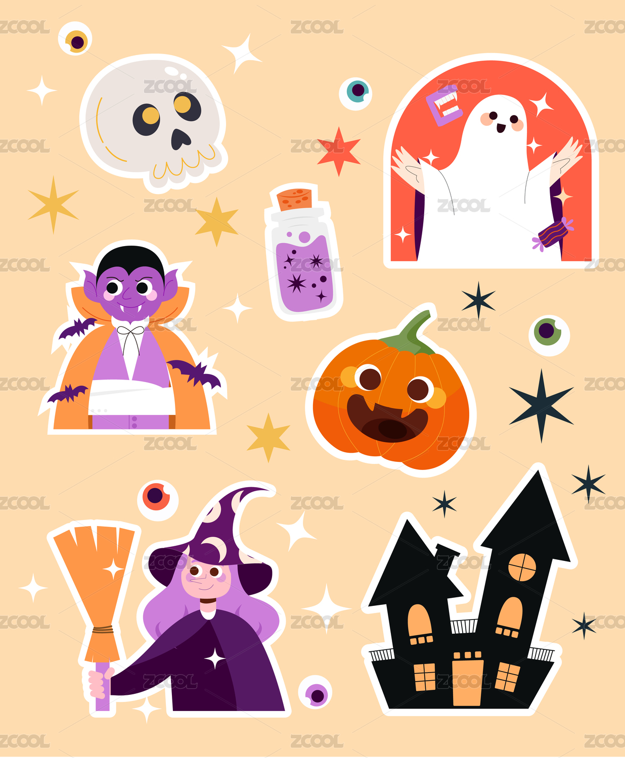 萬圣節(jié)可愛卡通貼紙元素