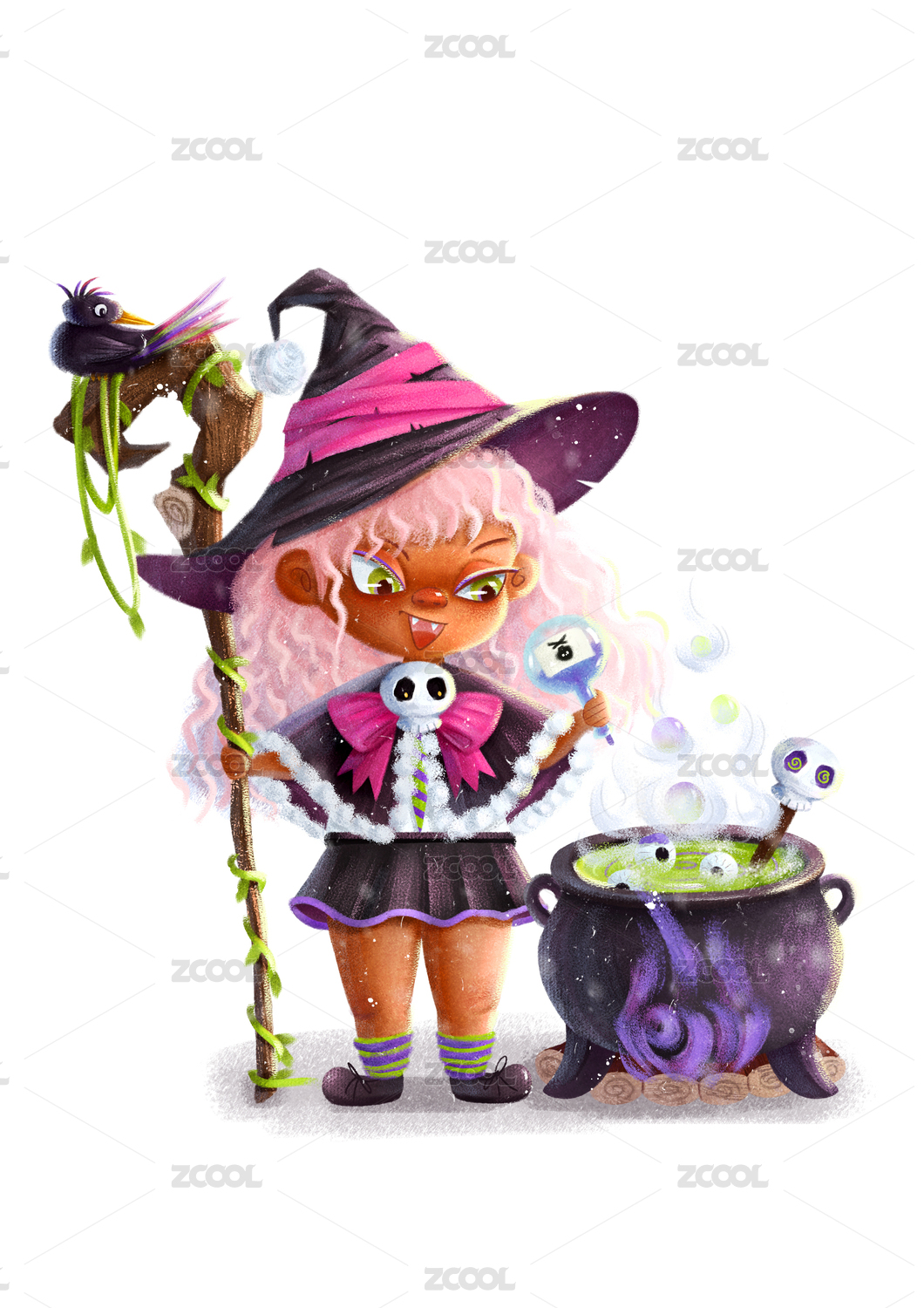 萬圣節(jié)女巫小魔女的包水彩手繪