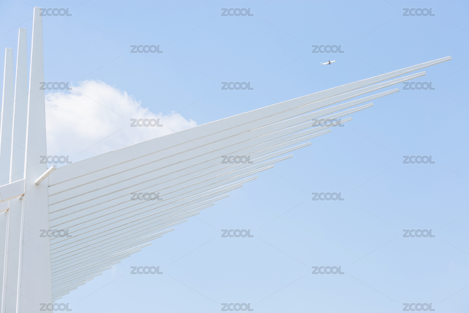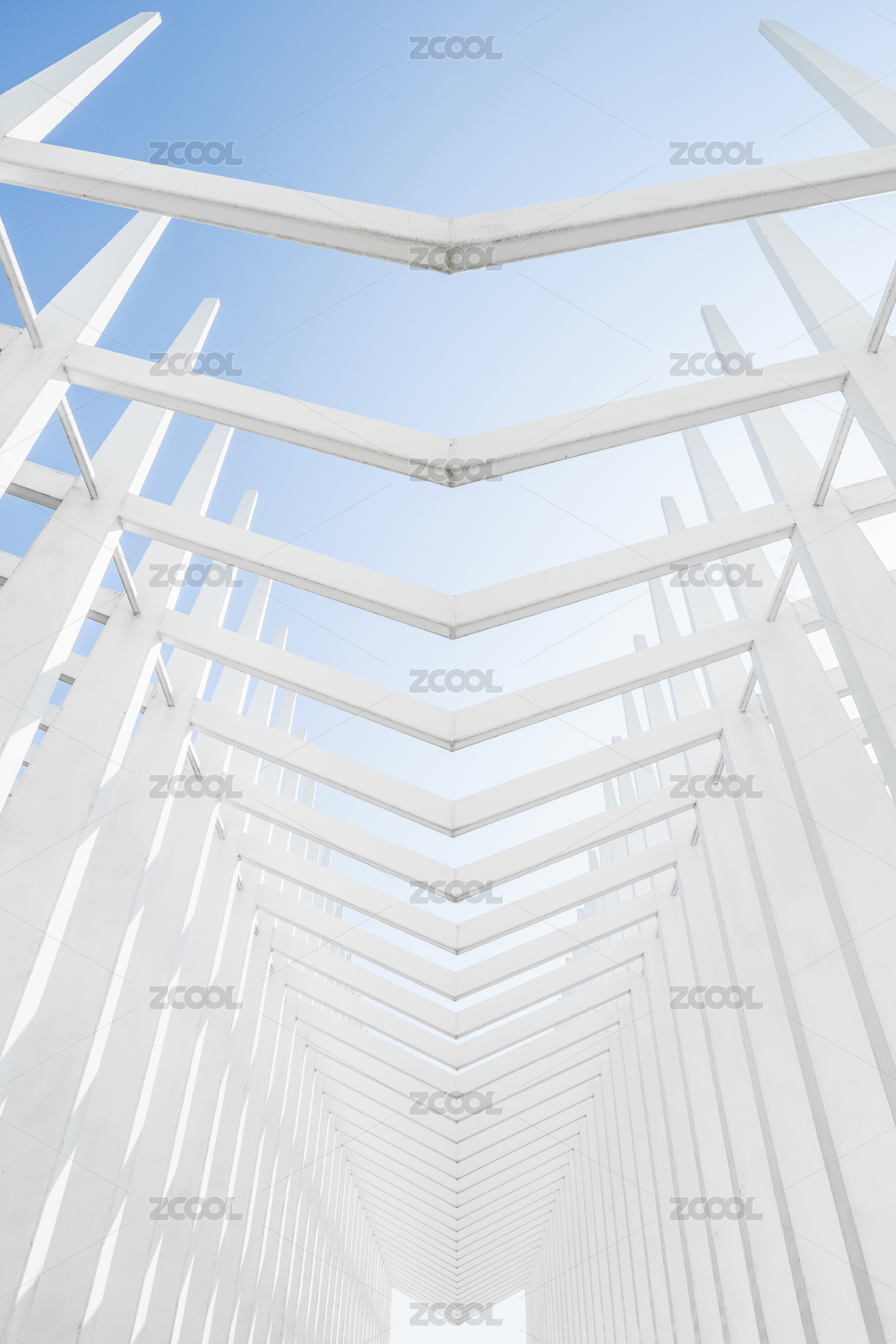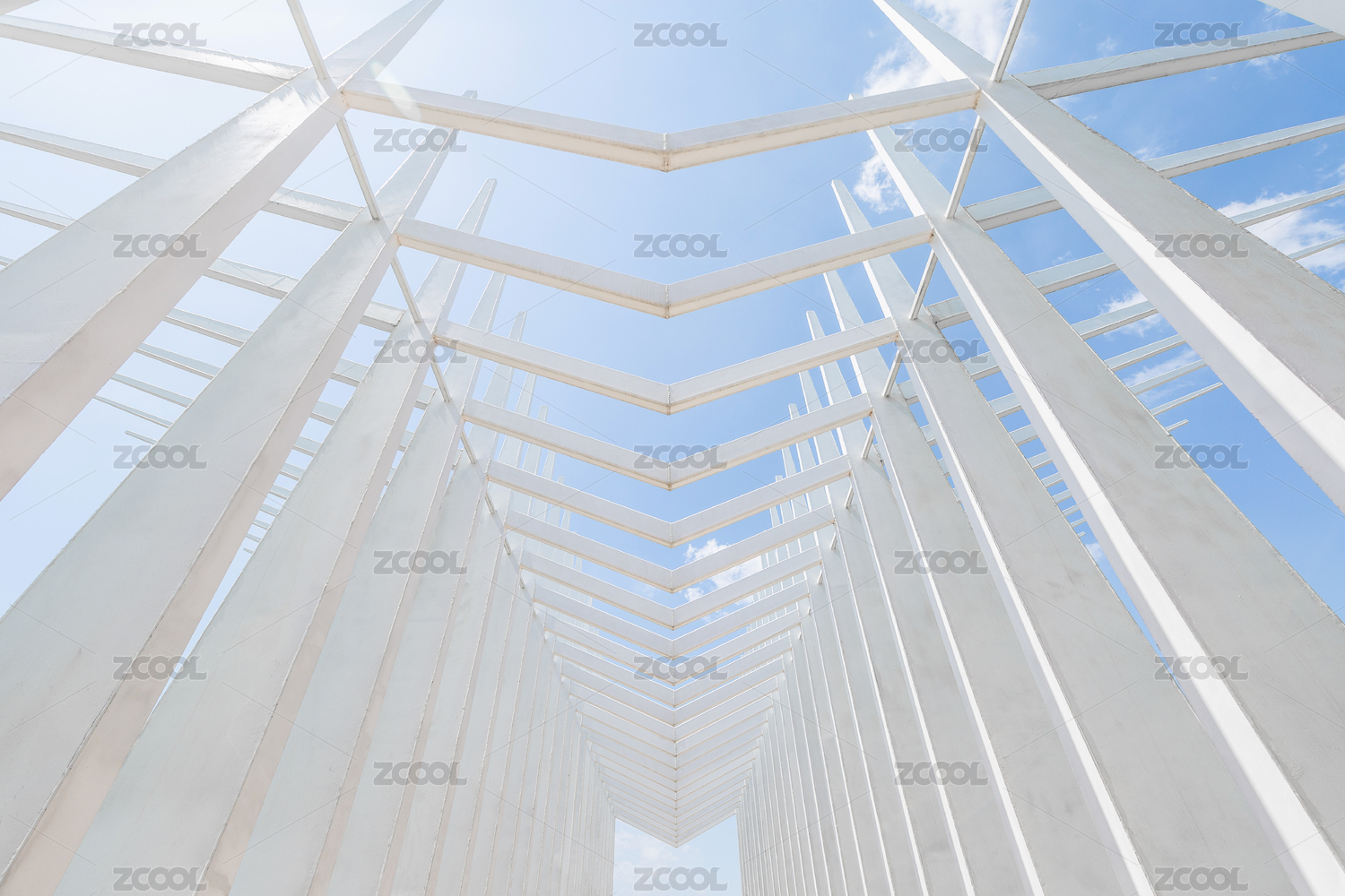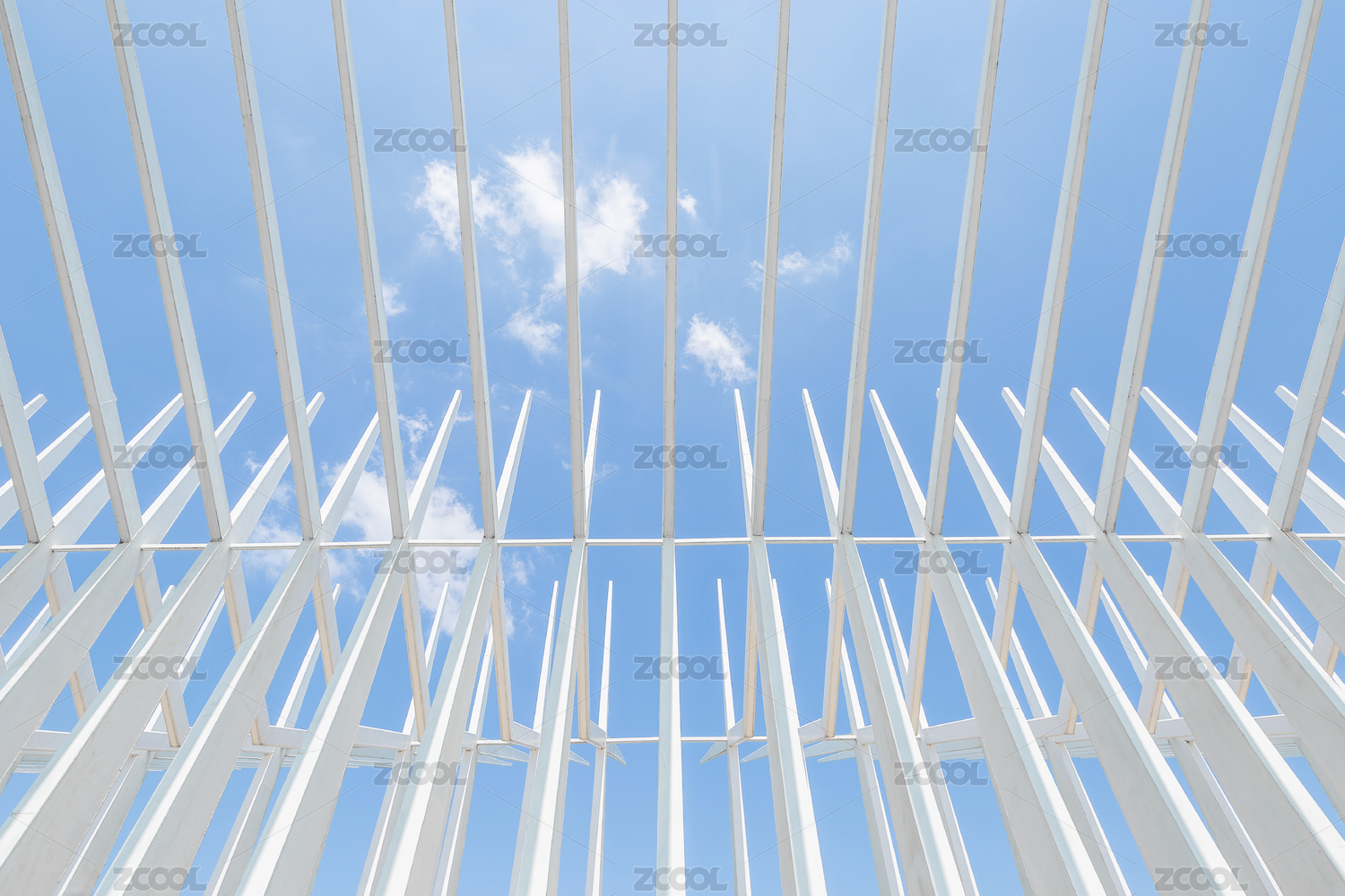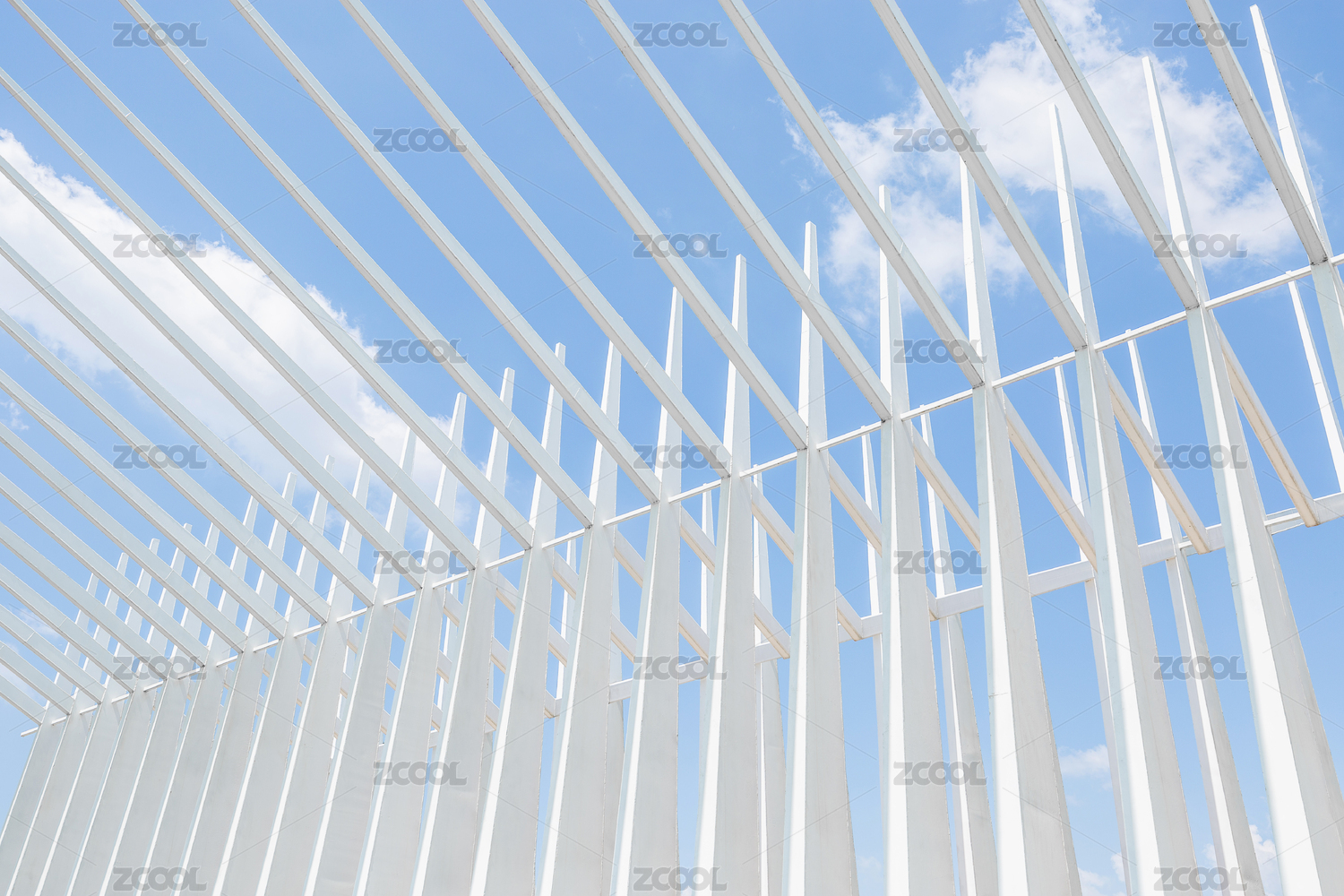 晴朗藍(lán)天下的白色鋼架結(jié)構(gòu)建筑