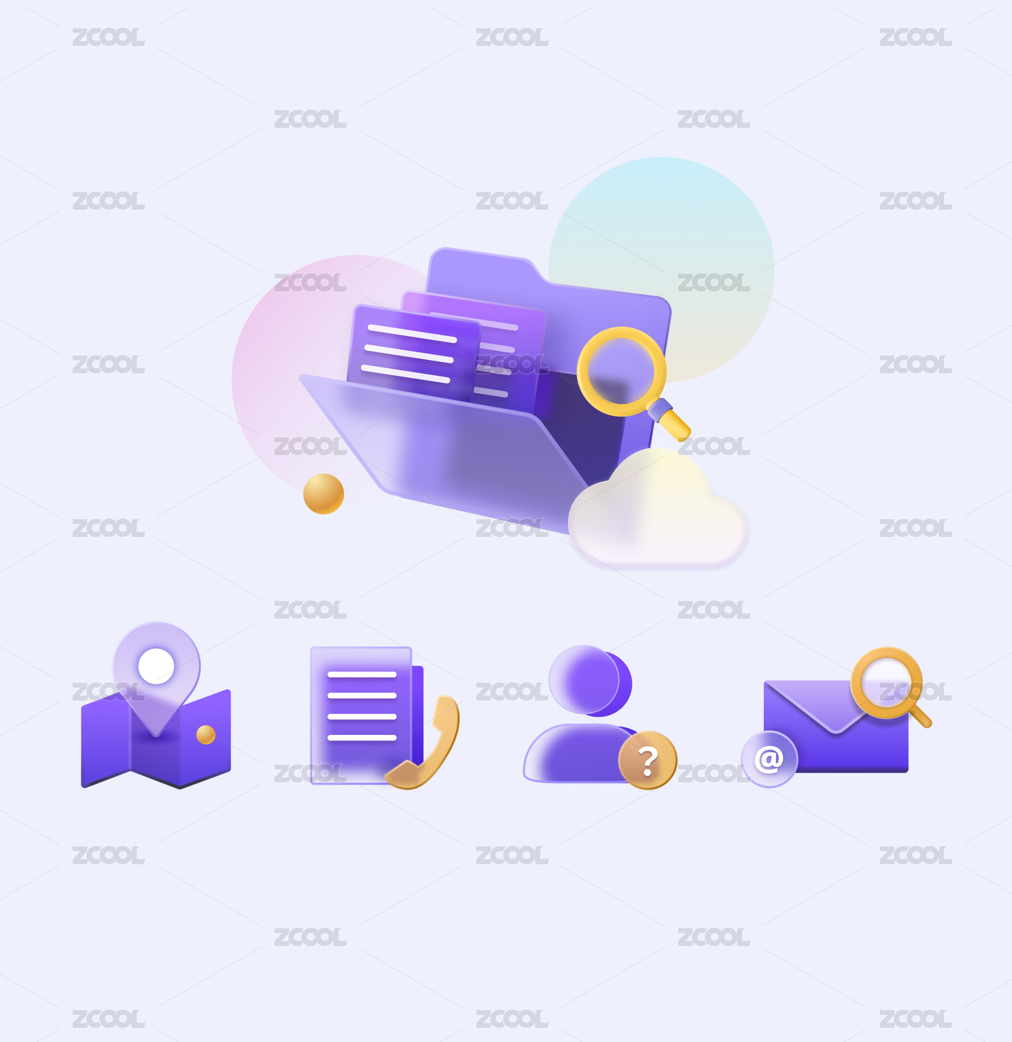 紫色亞克力磨砂玻璃質感3D圖標UI設計