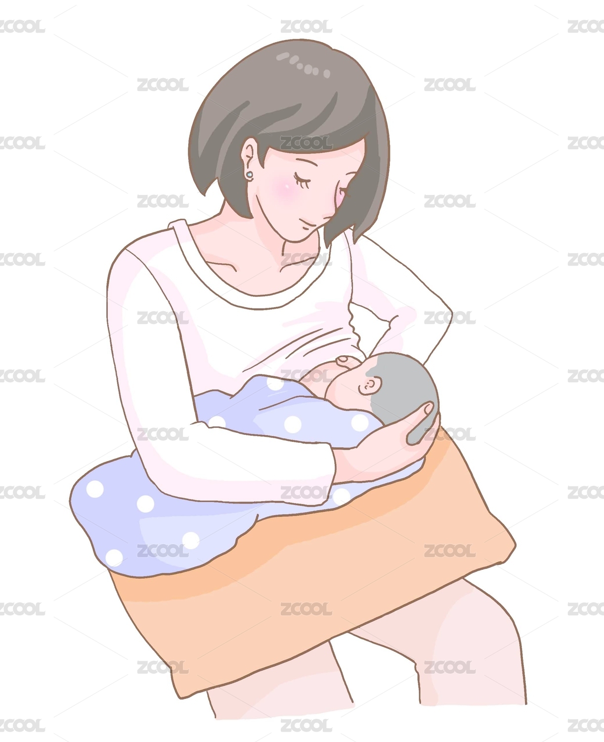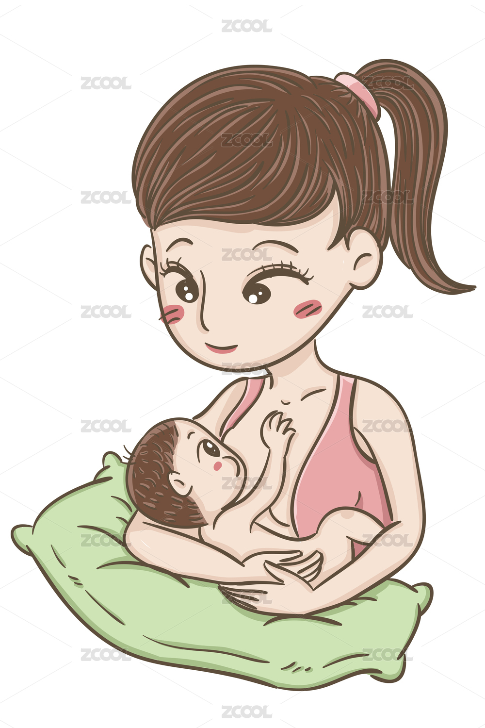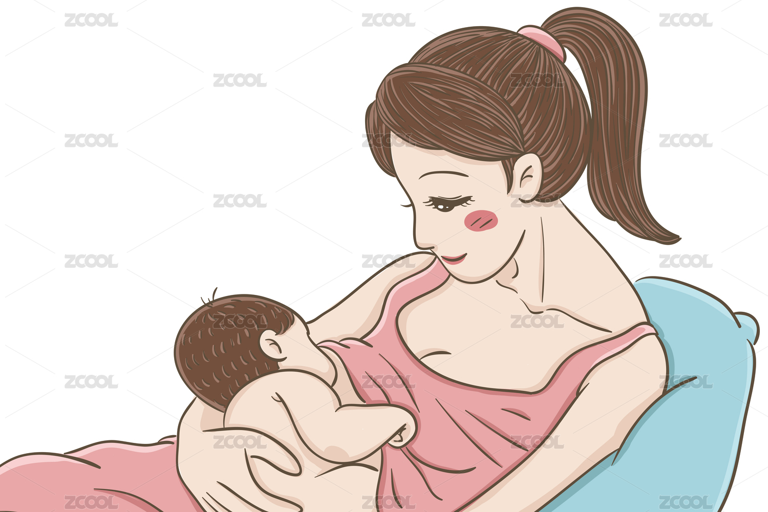 媽媽抱著嬰兒母乳喂養(yǎng)插畫
