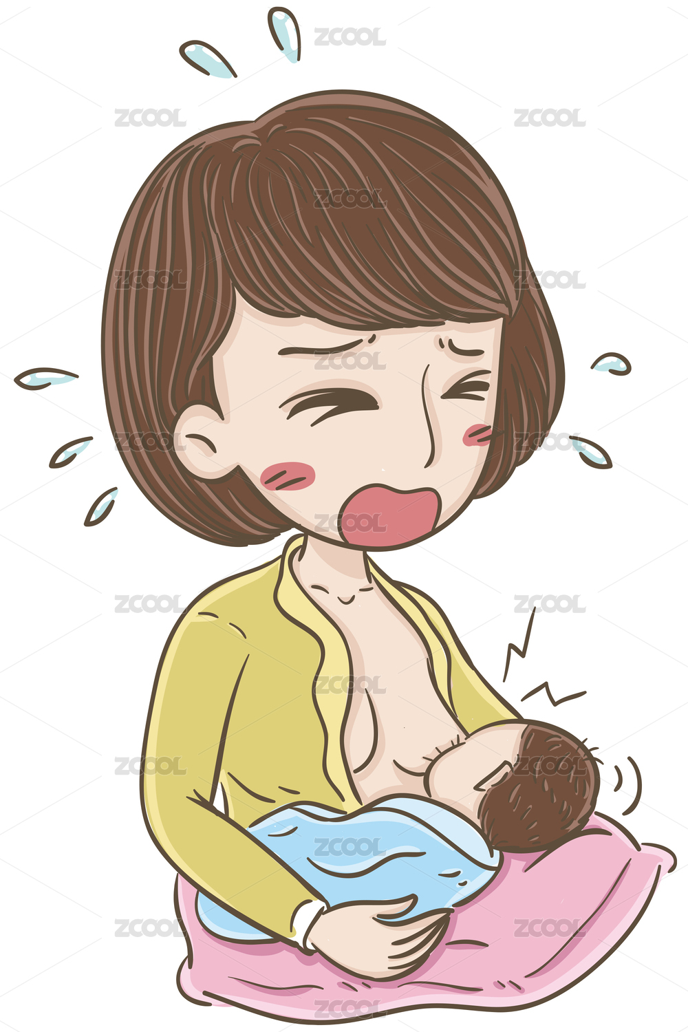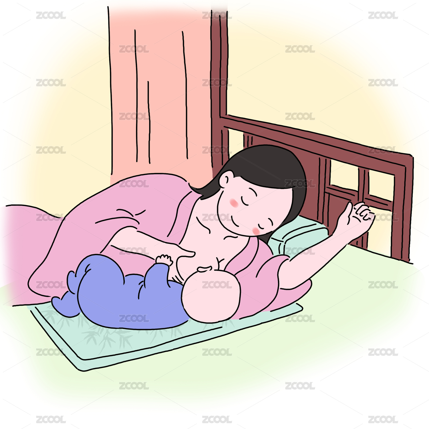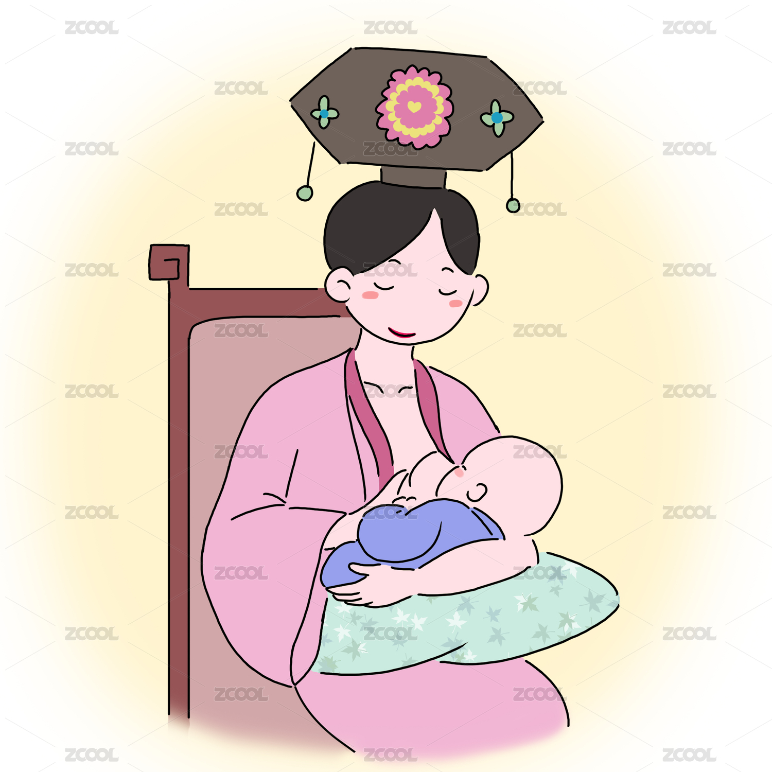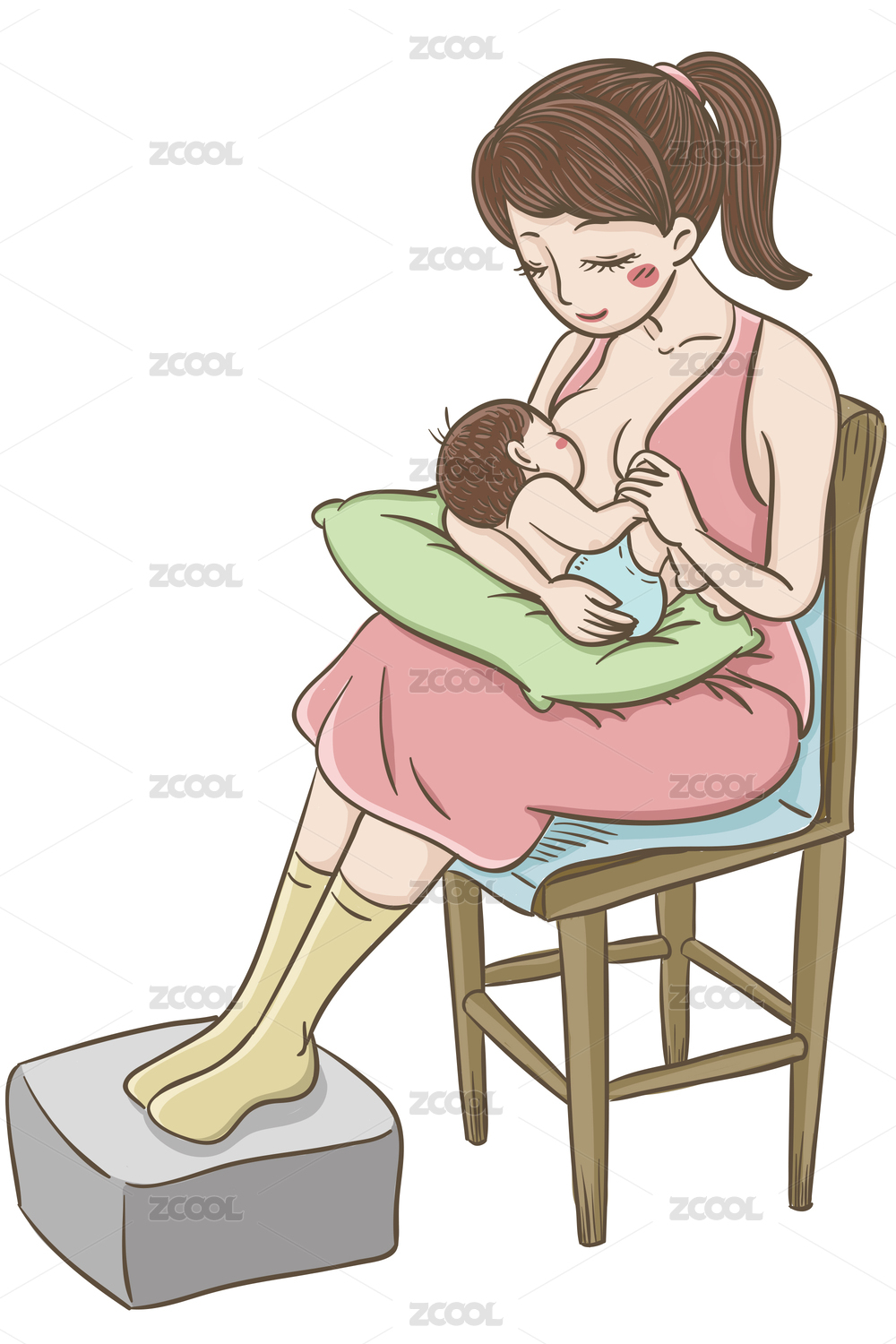 媽媽抱著嬰兒母乳喂養(yǎng)插畫