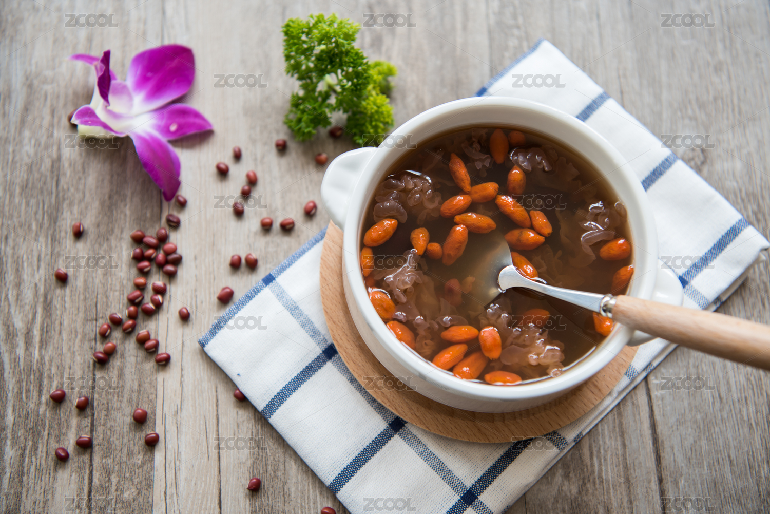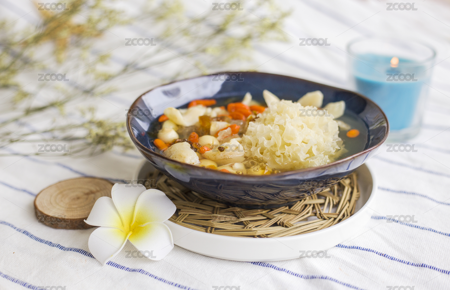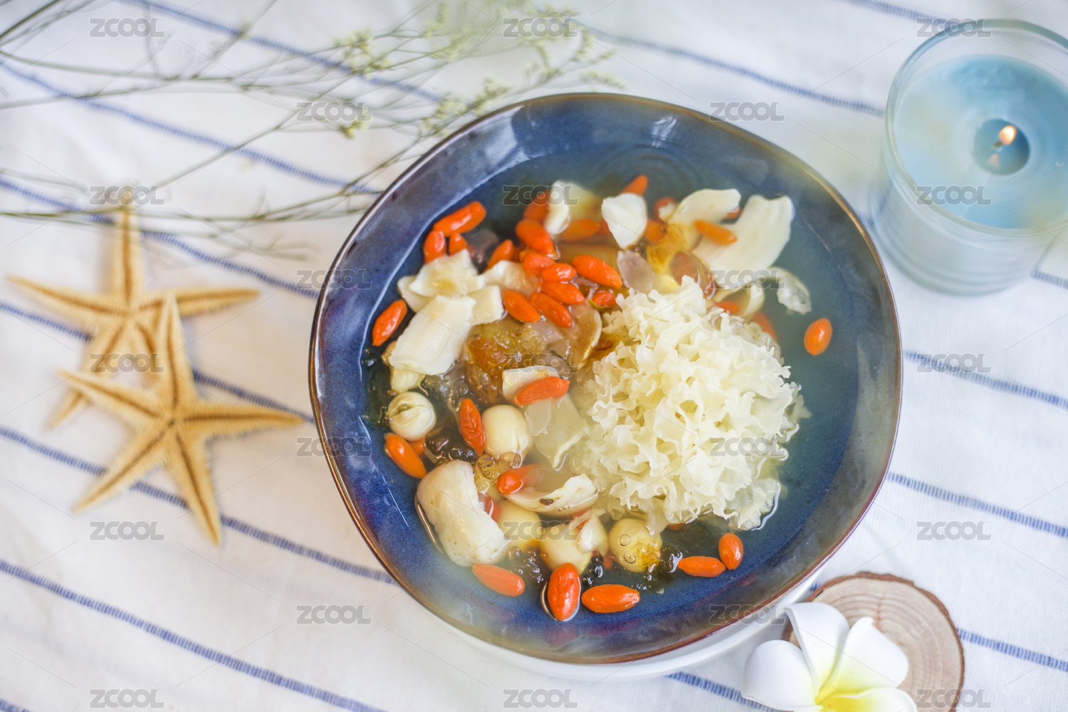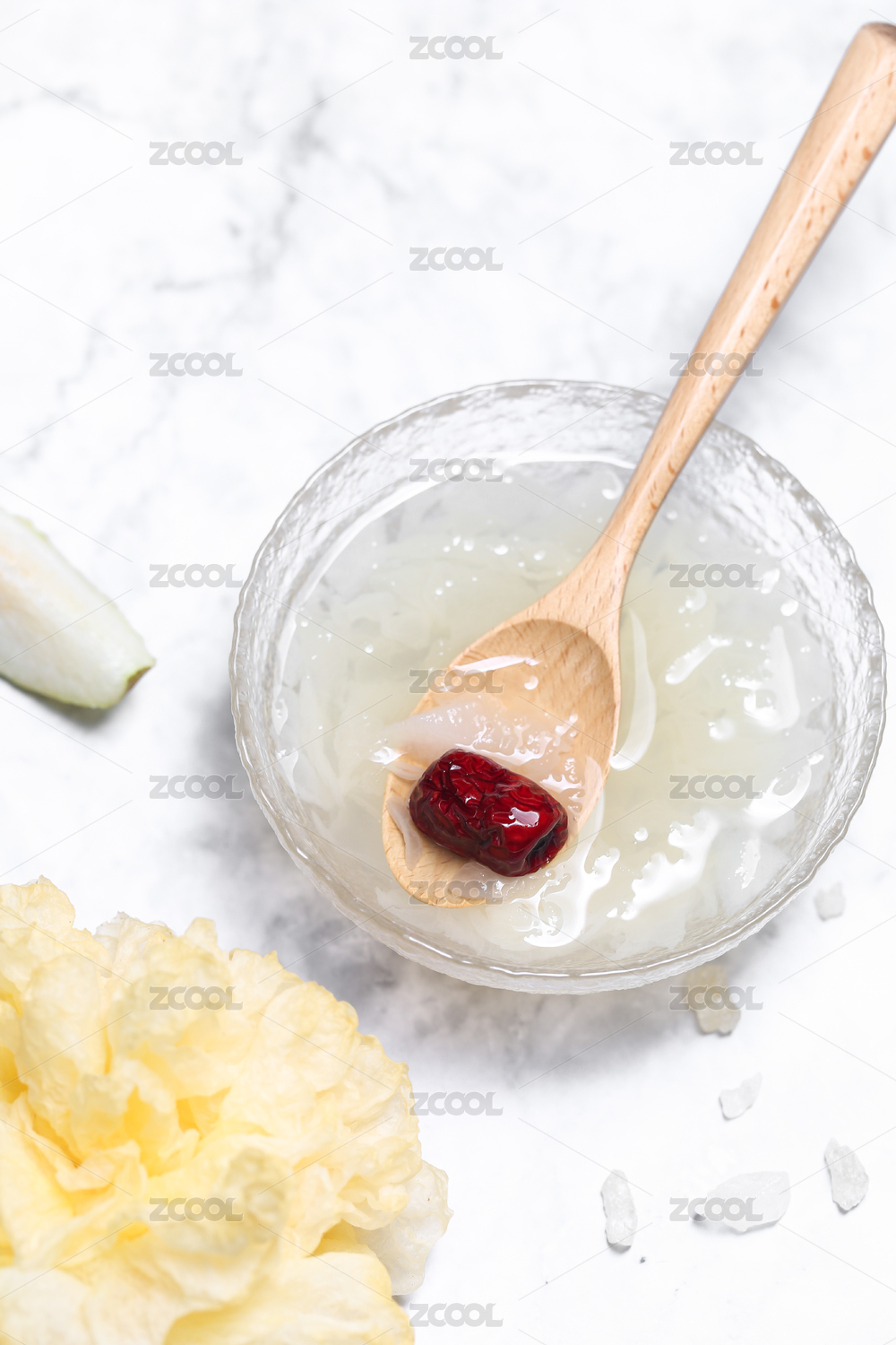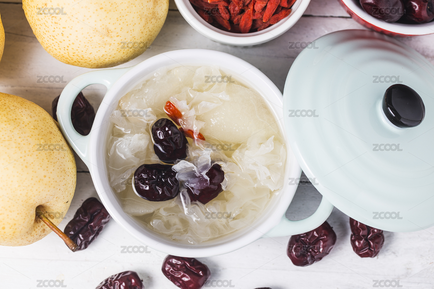 白底背景夏日清涼清爽新鮮紅棗銀耳湯