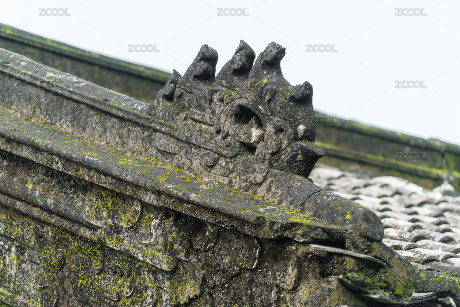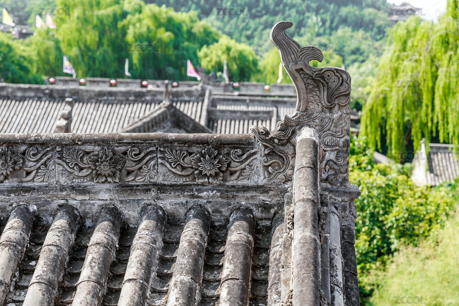 青瓦房屋脊磚雕,中國山西省晉城市皇城相府