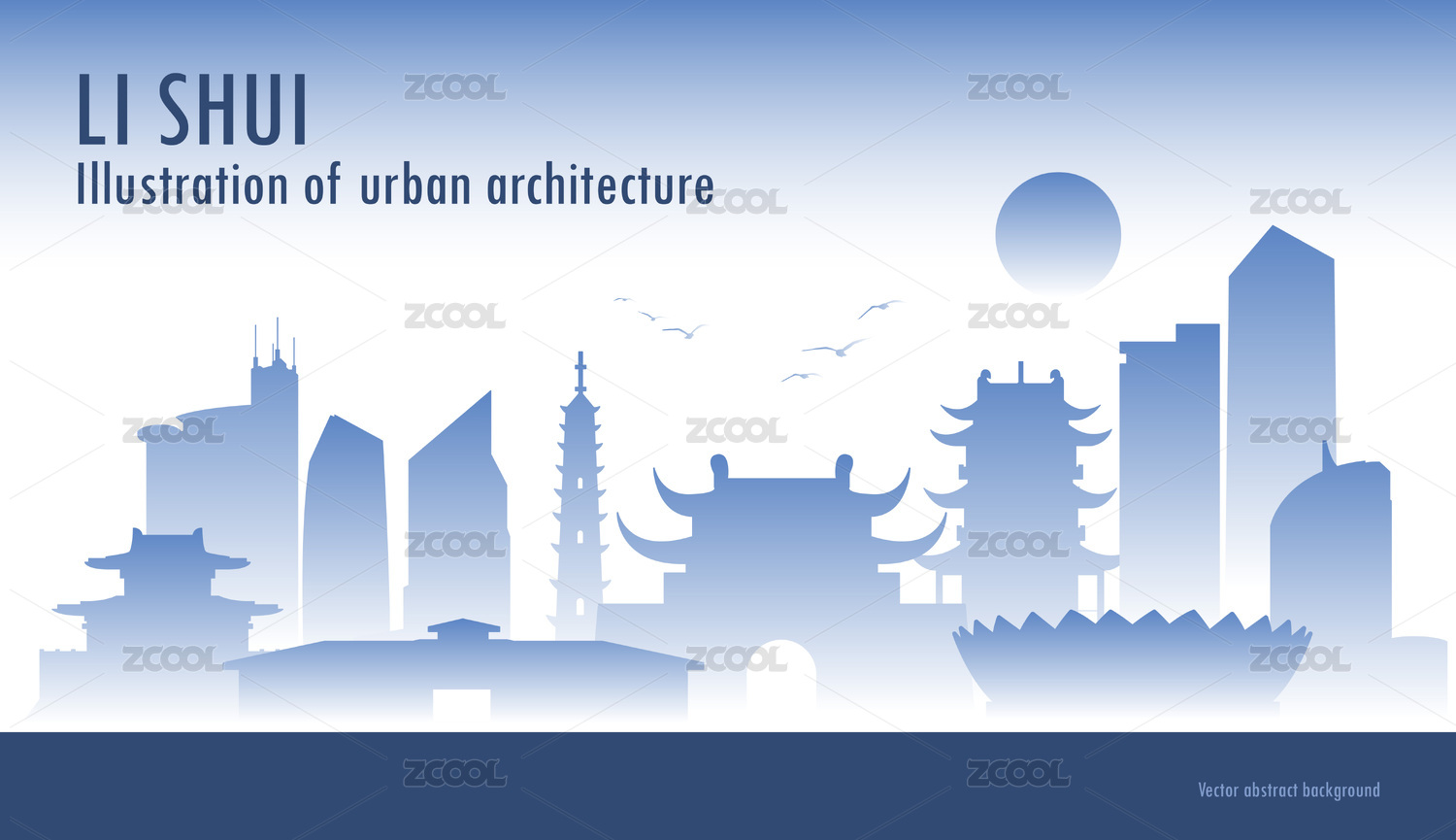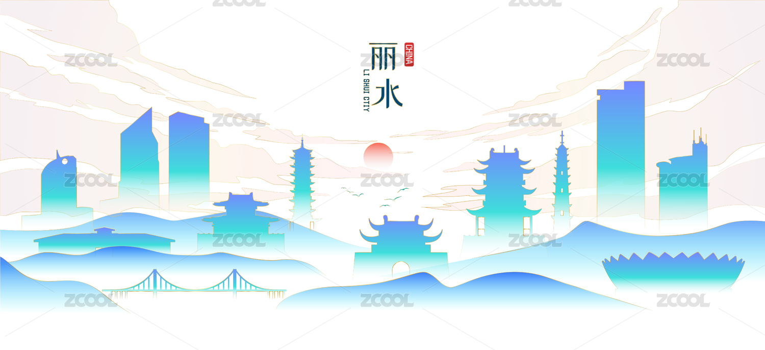 麗水城市地標(biāo)建筑國潮風(fēng)矢量手繪