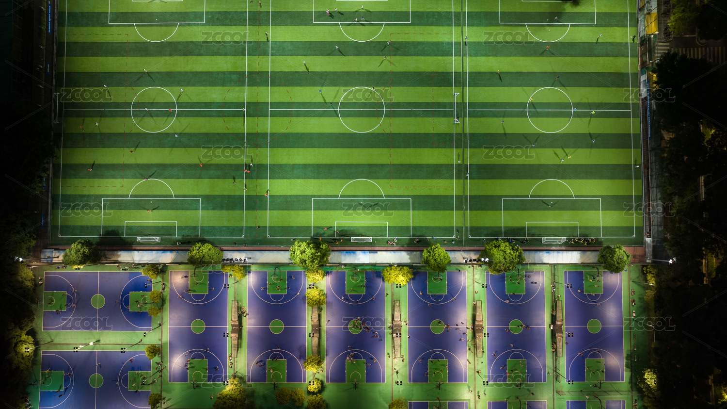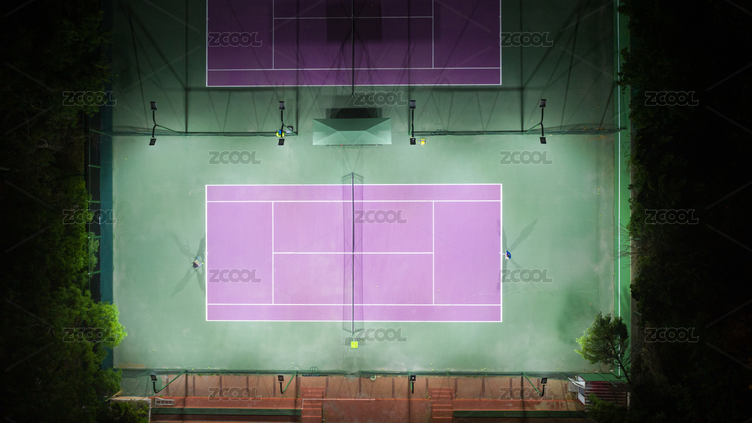 航拍視角網(wǎng)球場(chǎng)夜景