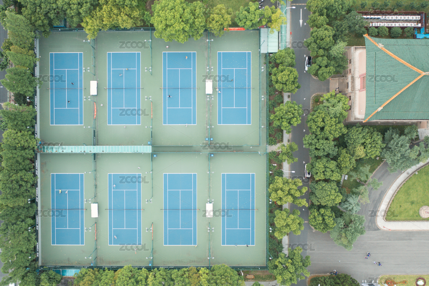 航拍視角網(wǎng)球場(chǎng)