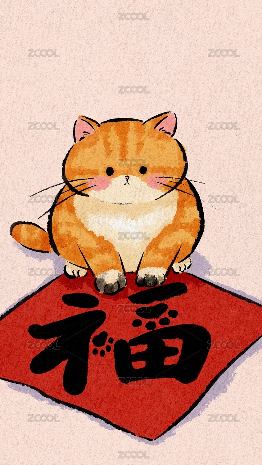 橘貓與福字可愛(ài)插畫