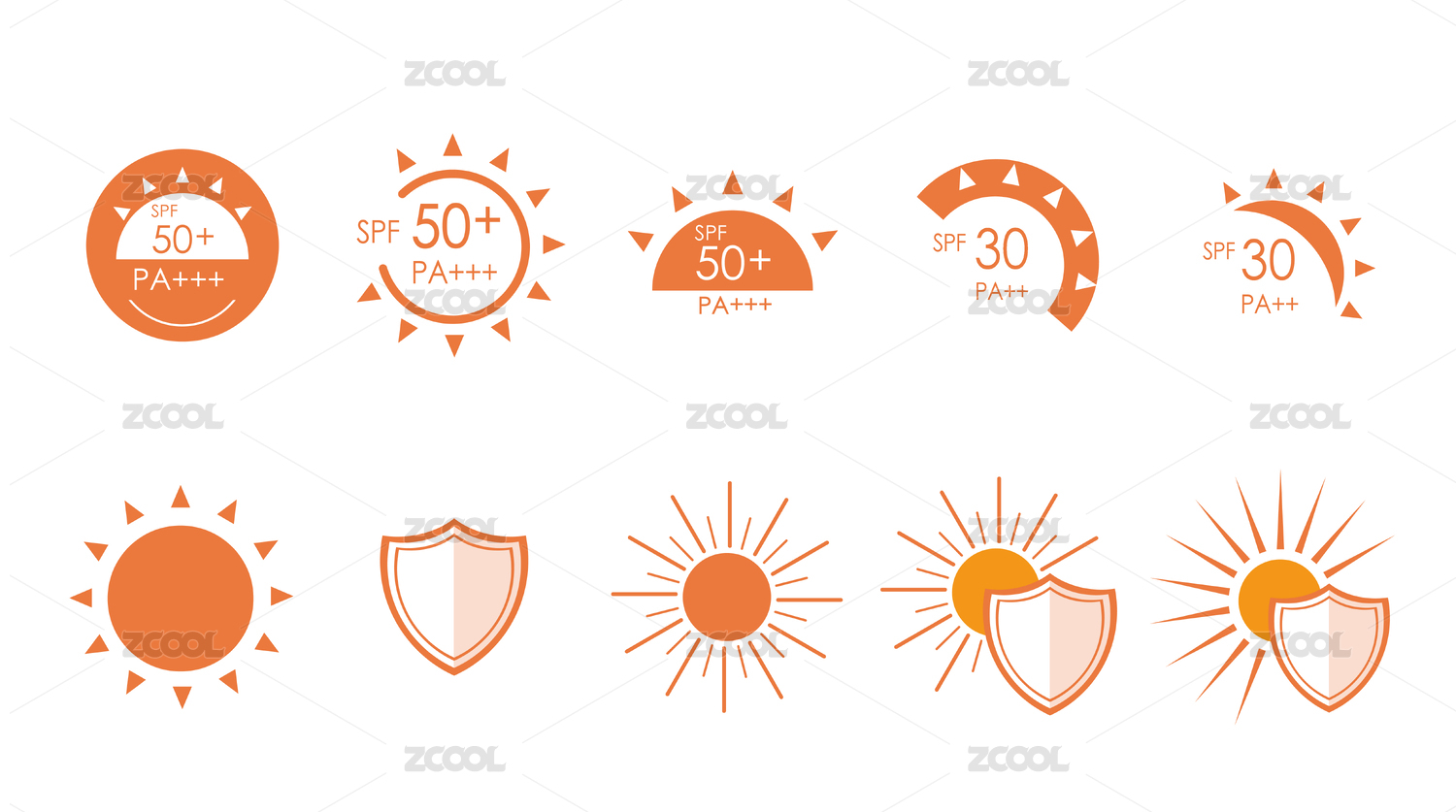 夏日橙色紫外線SPF防曬指數(shù)簡約圖標矢量