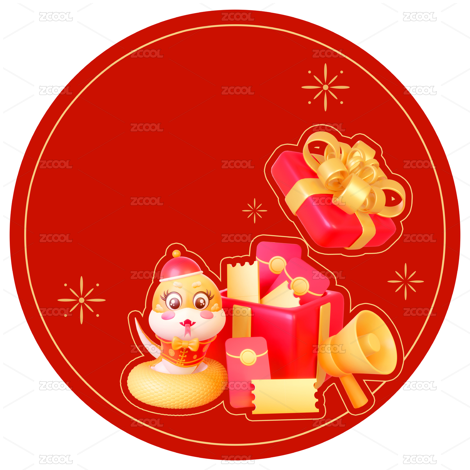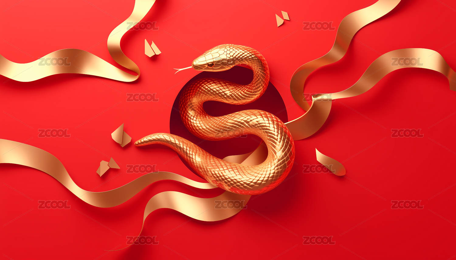 紅金色金蛇蛇年新春佳節(jié)慶典3d立體插畫