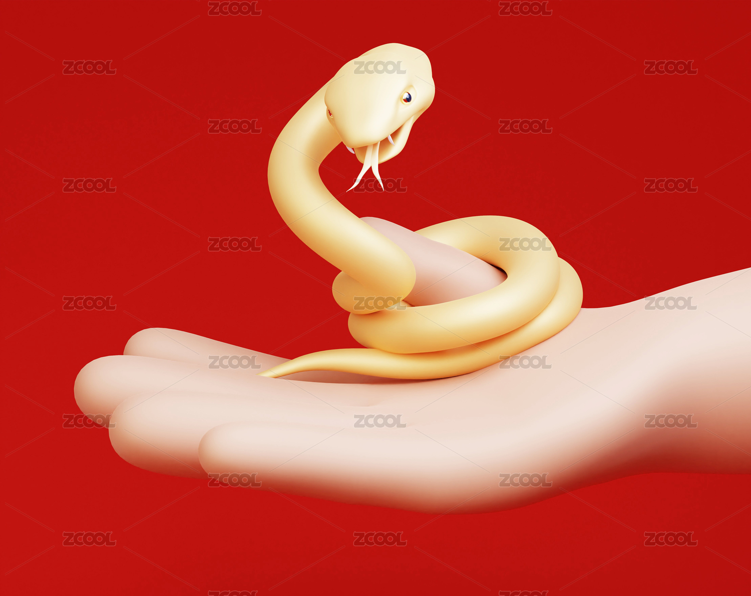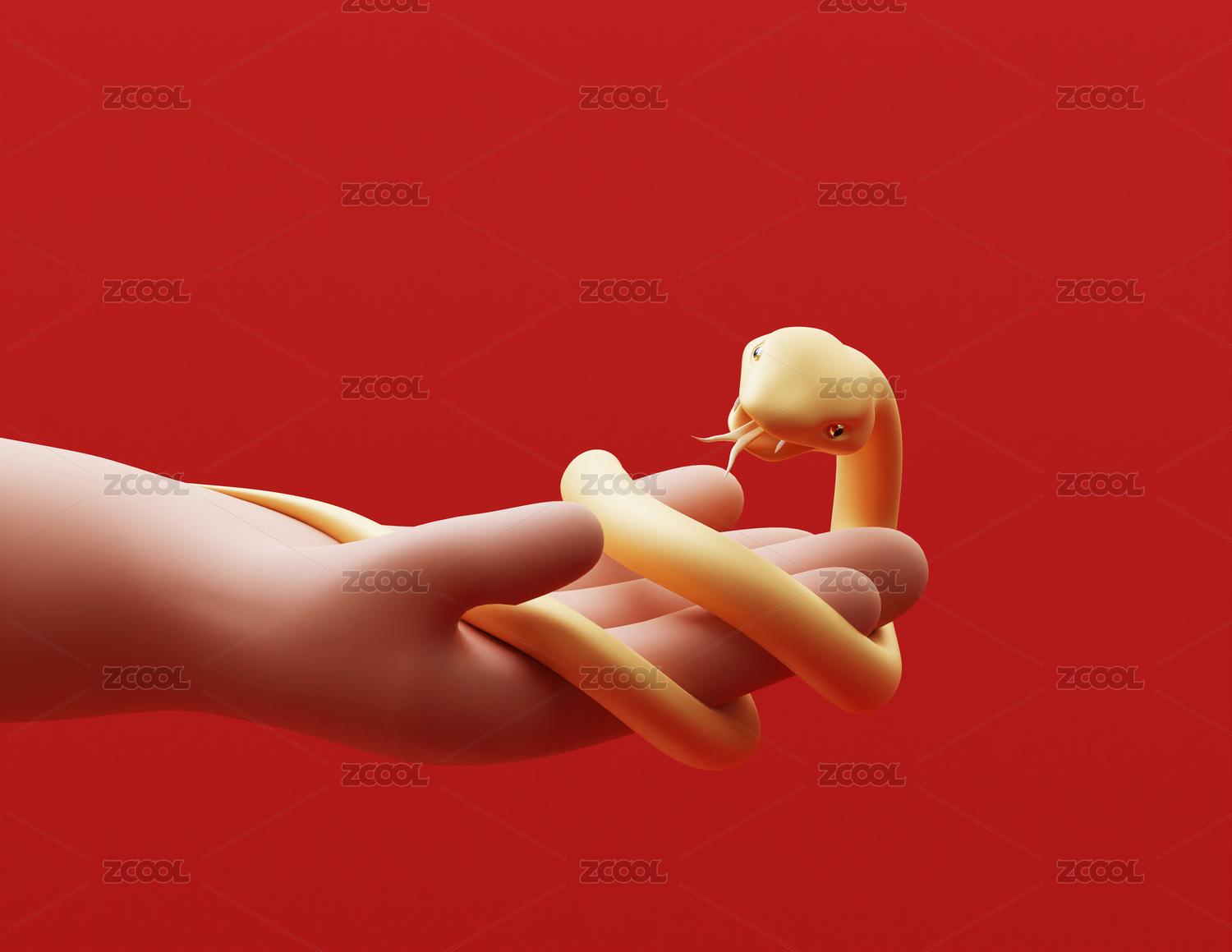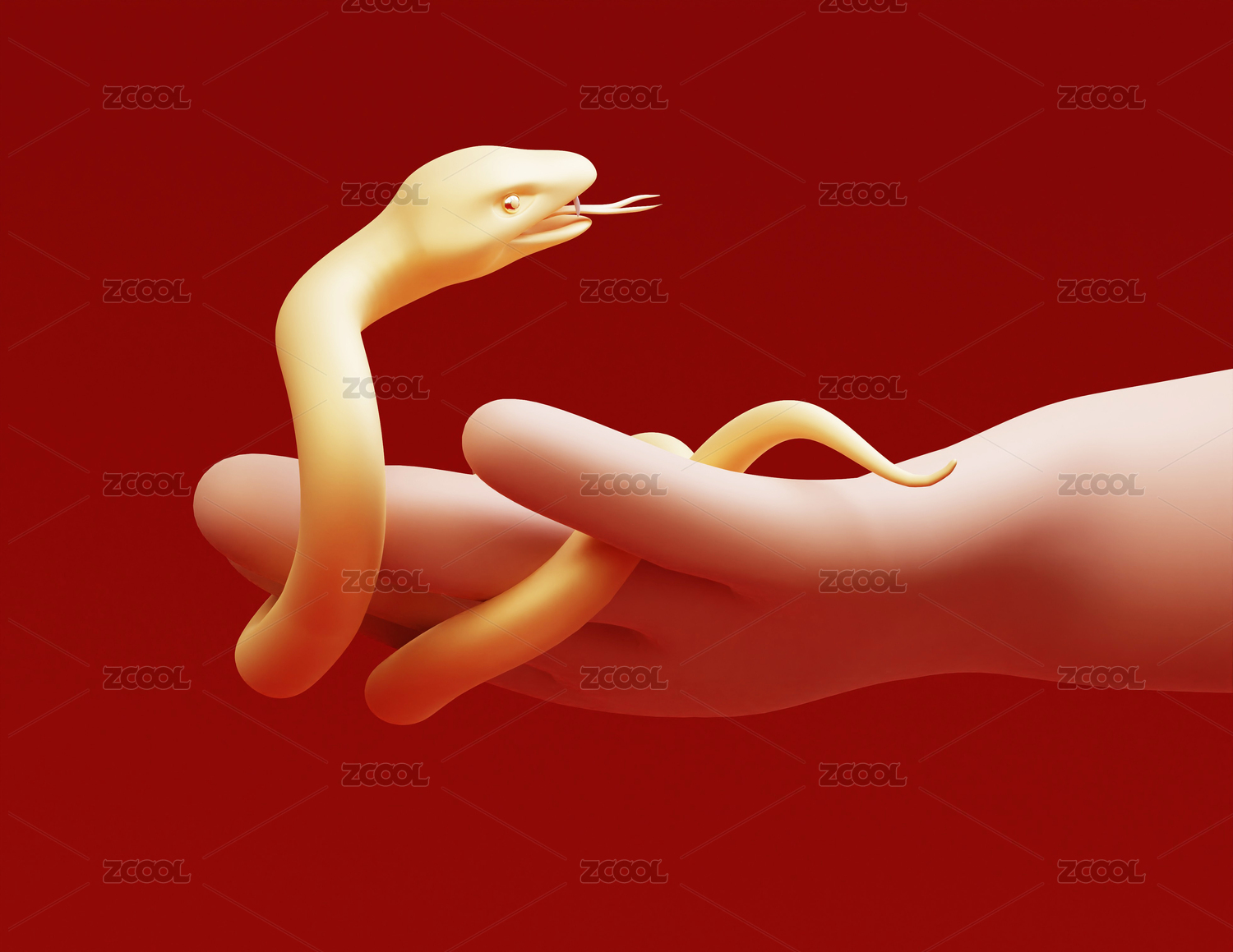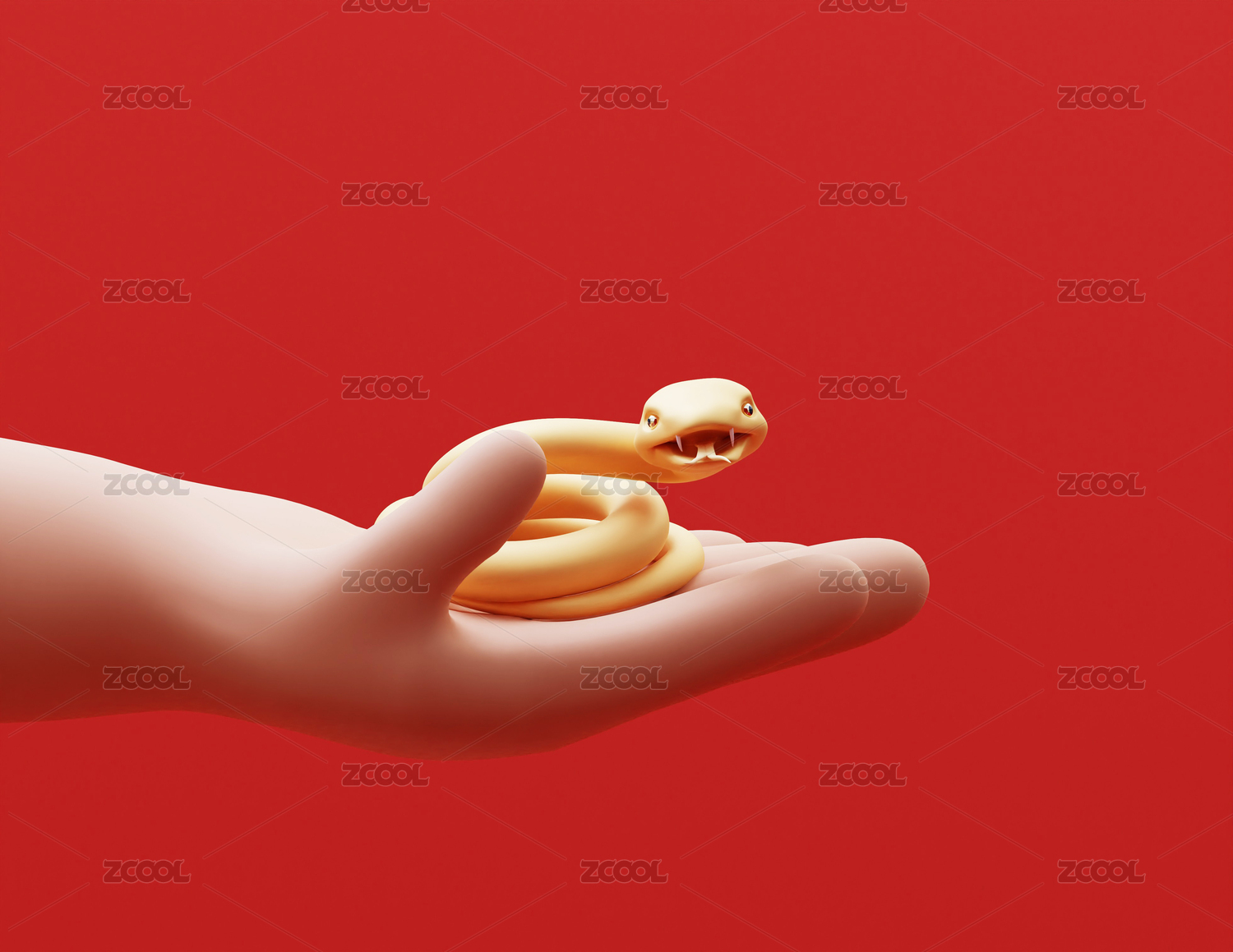 3D渲染人手捧小金蛇寵物