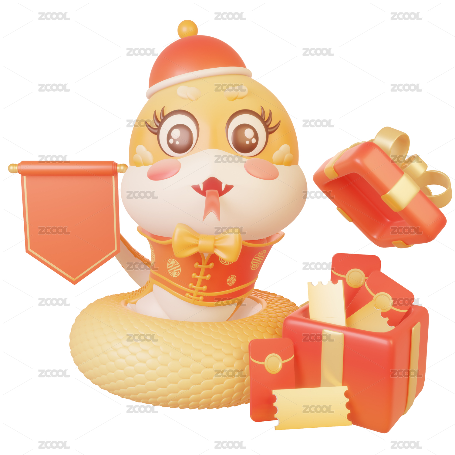 紅金色蛇年金蛇喜慶3d立體插畫元素