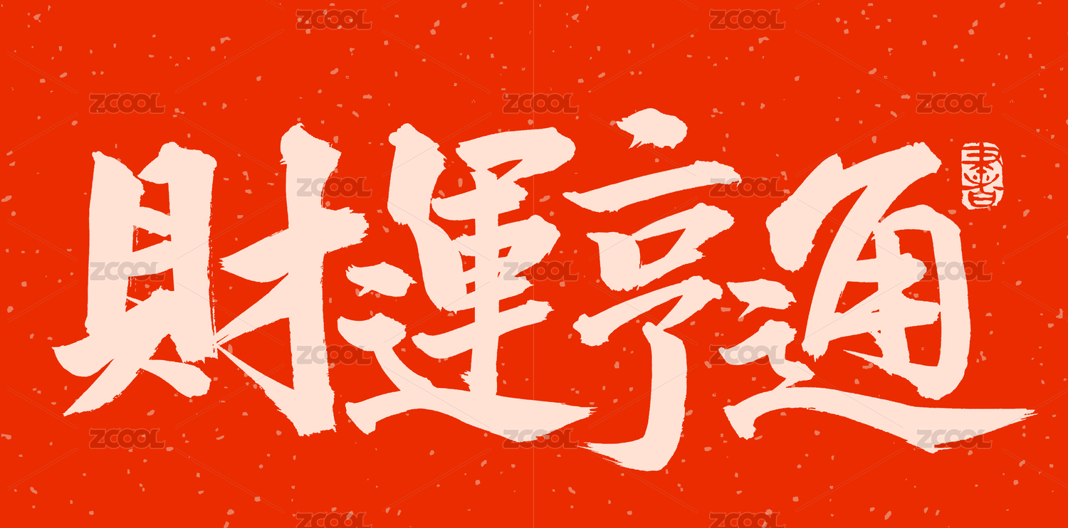 國潮風(fēng)格創(chuàng)意書法毛筆字海報(bào)字體財(cái)運(yùn)亨通