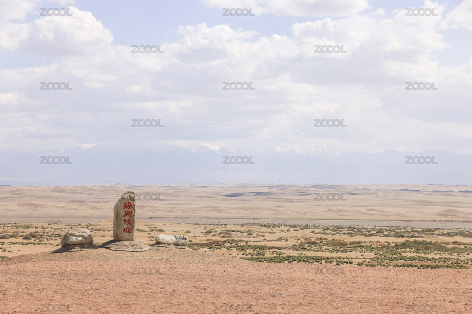 戈壁灘上的陽(yáng)關(guān)故址石碑