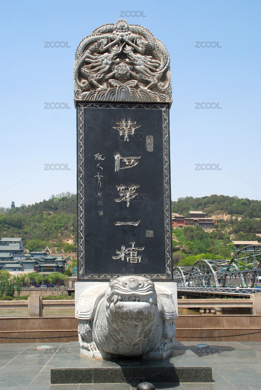 中式雙龍戲珠鏤空雕刻的紀(jì)念石碑