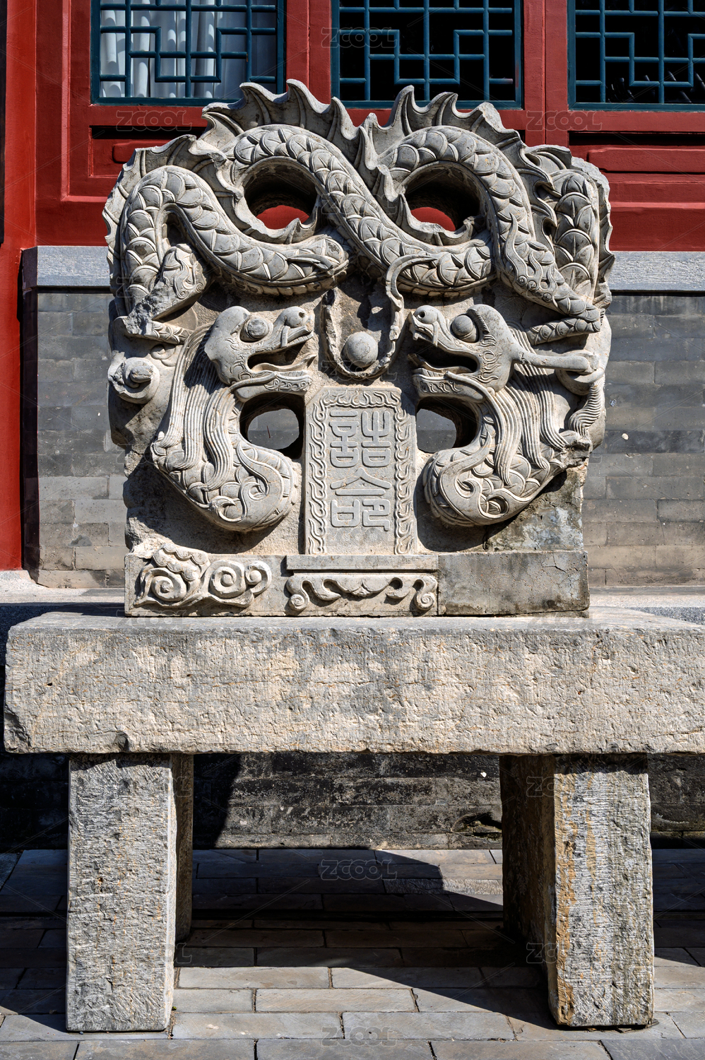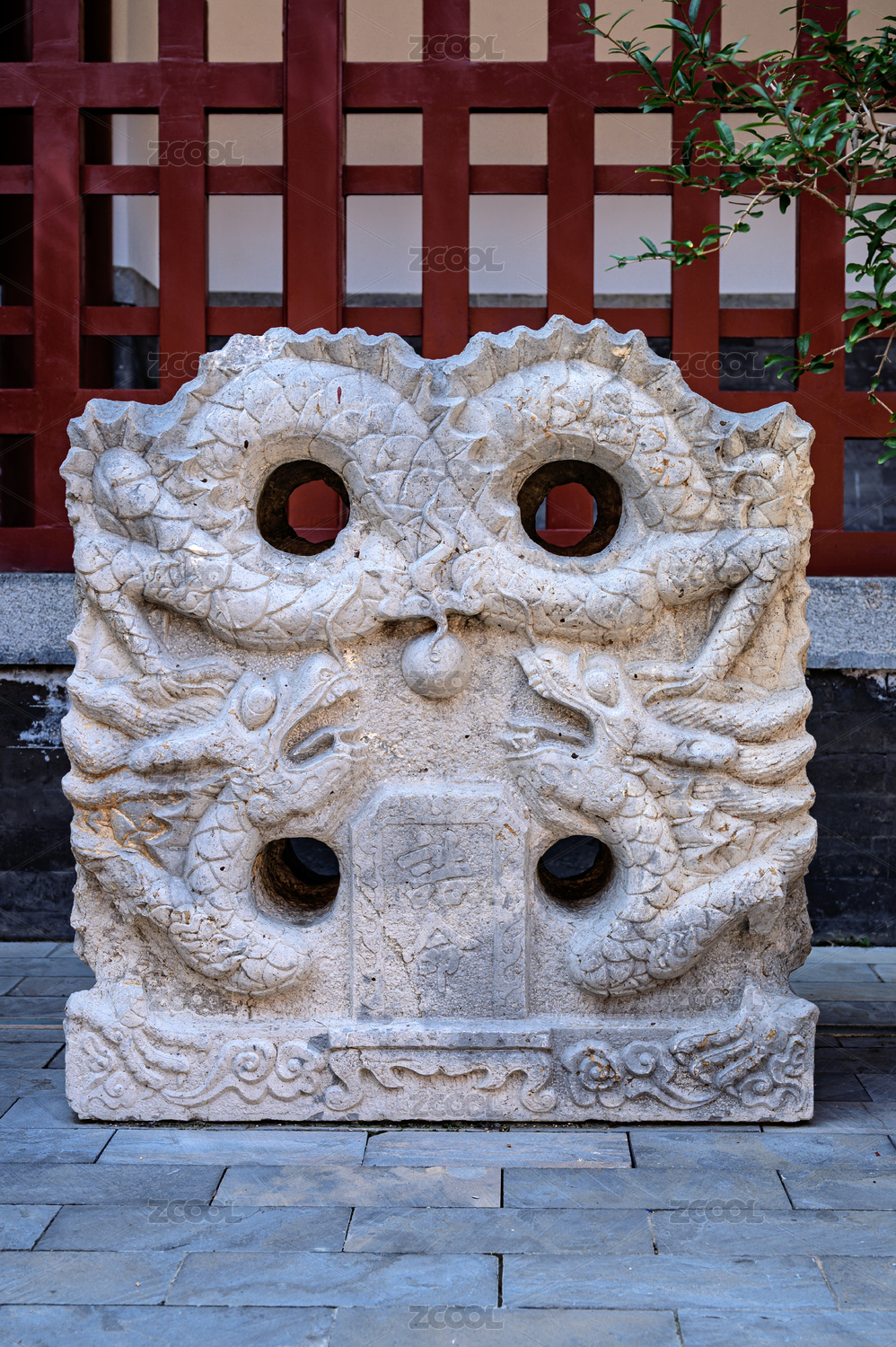 中式雙龍戲珠雕刻石碑
