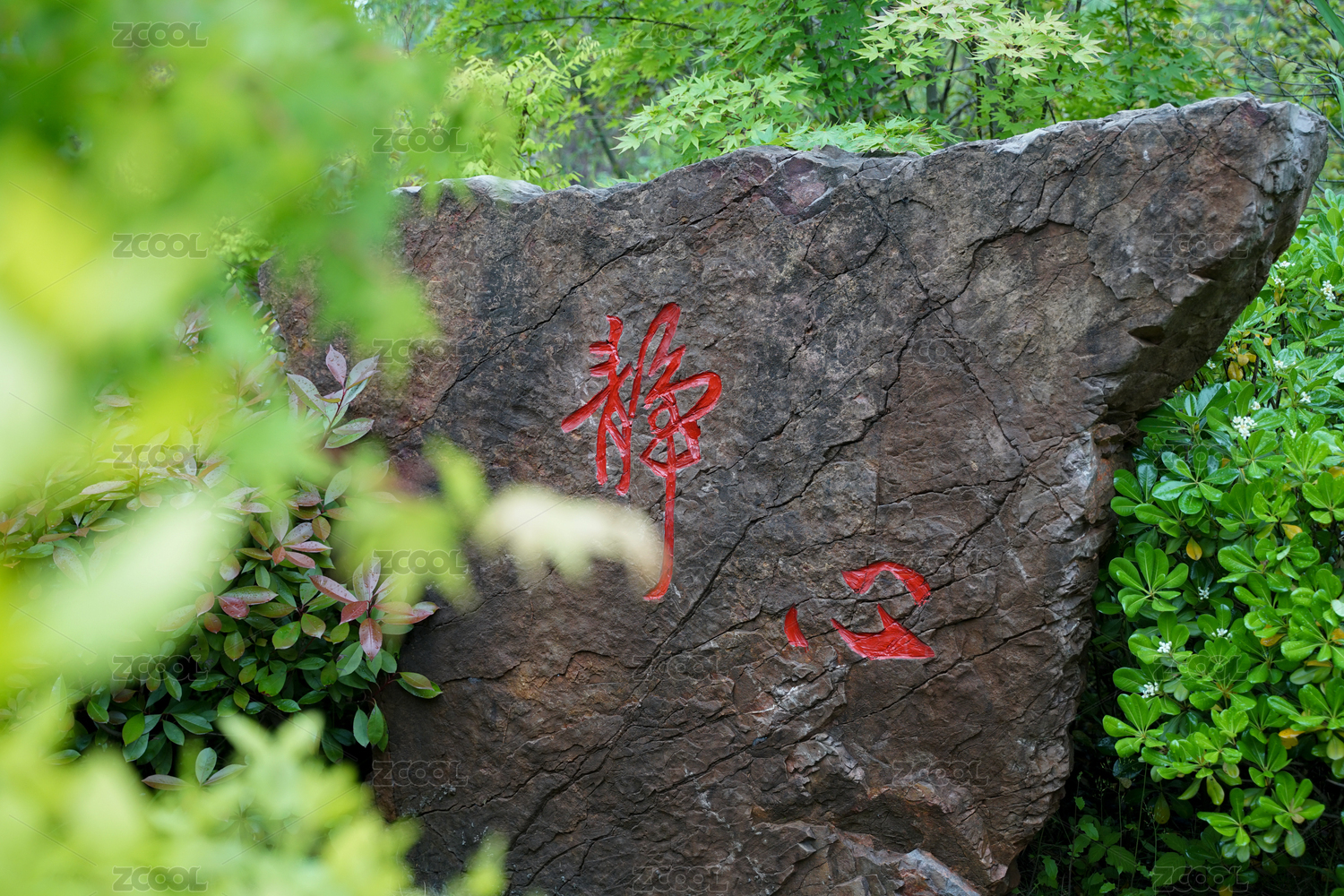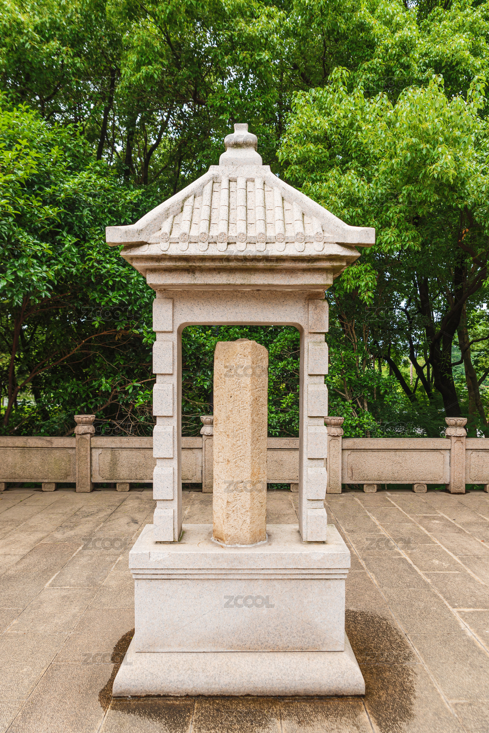 夏天公園一角刻字石碑圖片