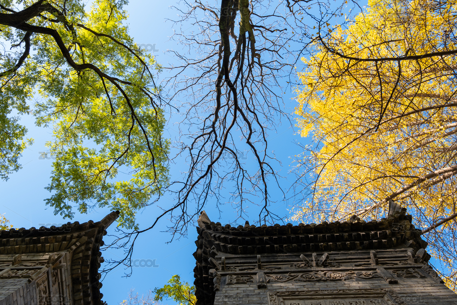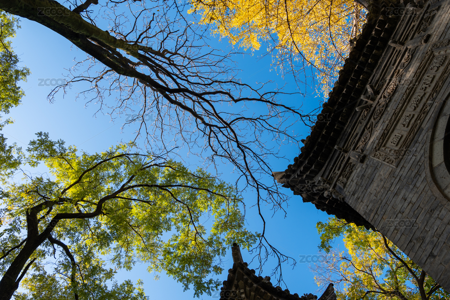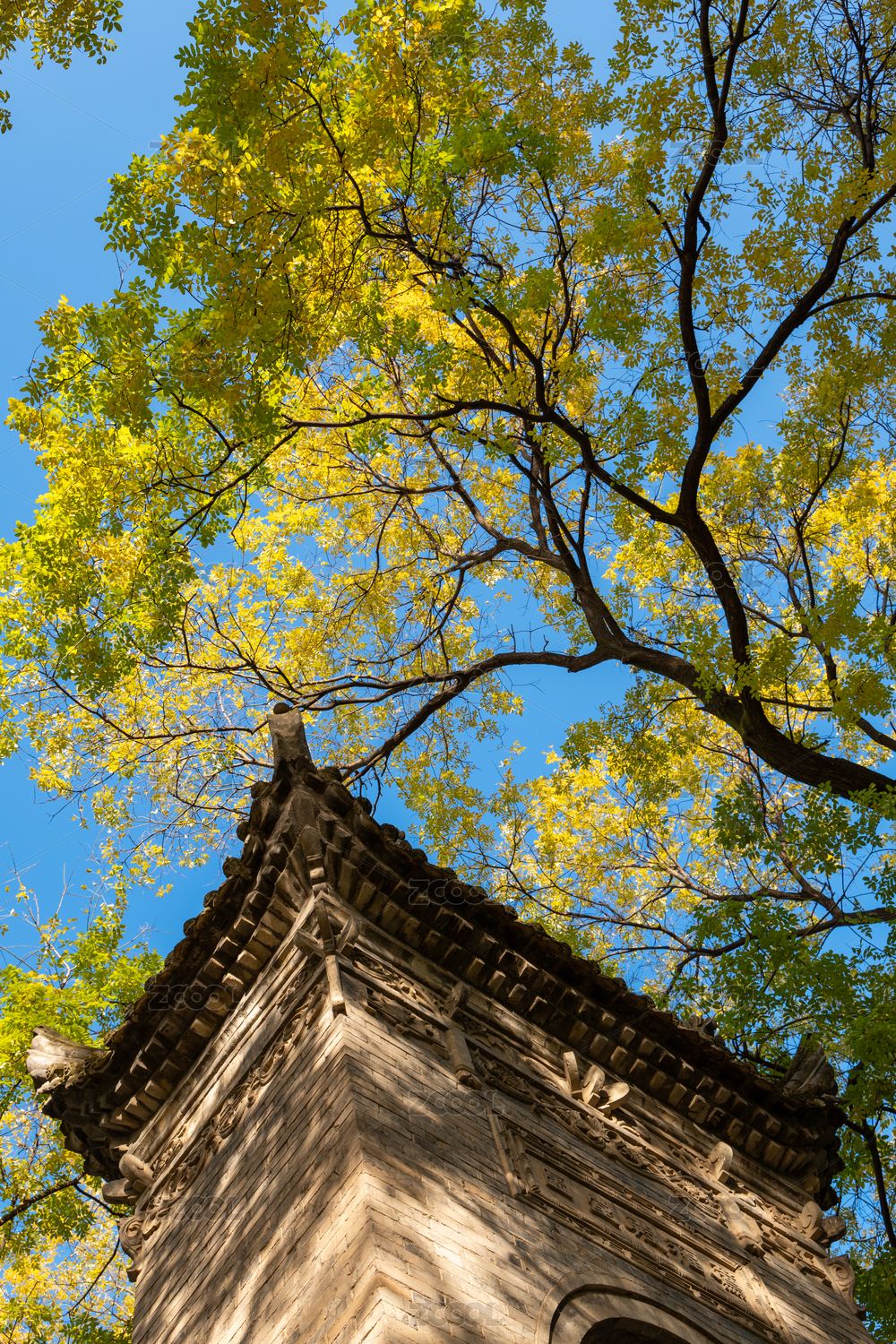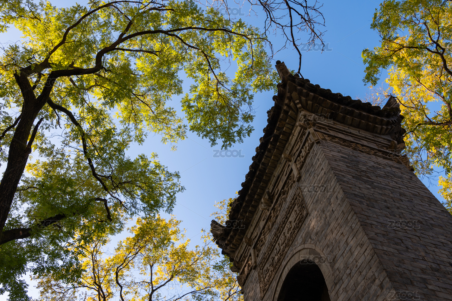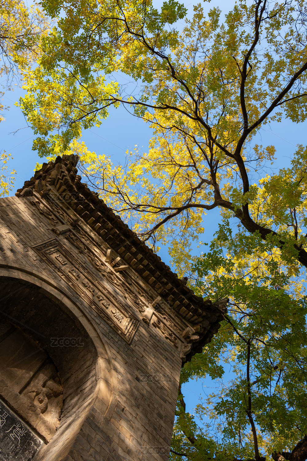 西安博物院小雁塔遺址古老的石碑和參天古樹