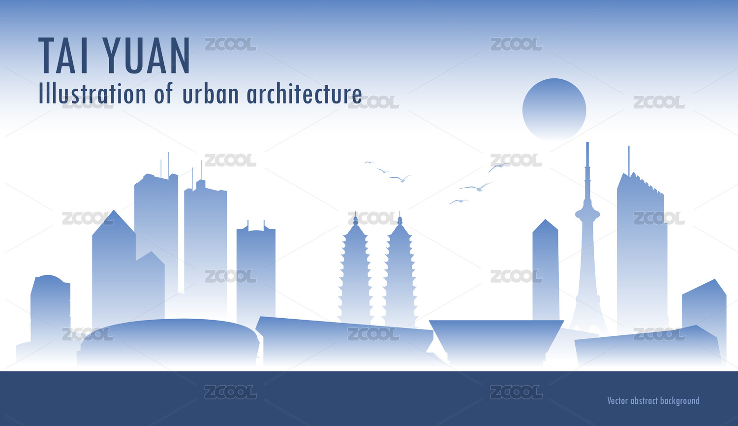太原城市地標(biāo)建筑背景插畫(huà)