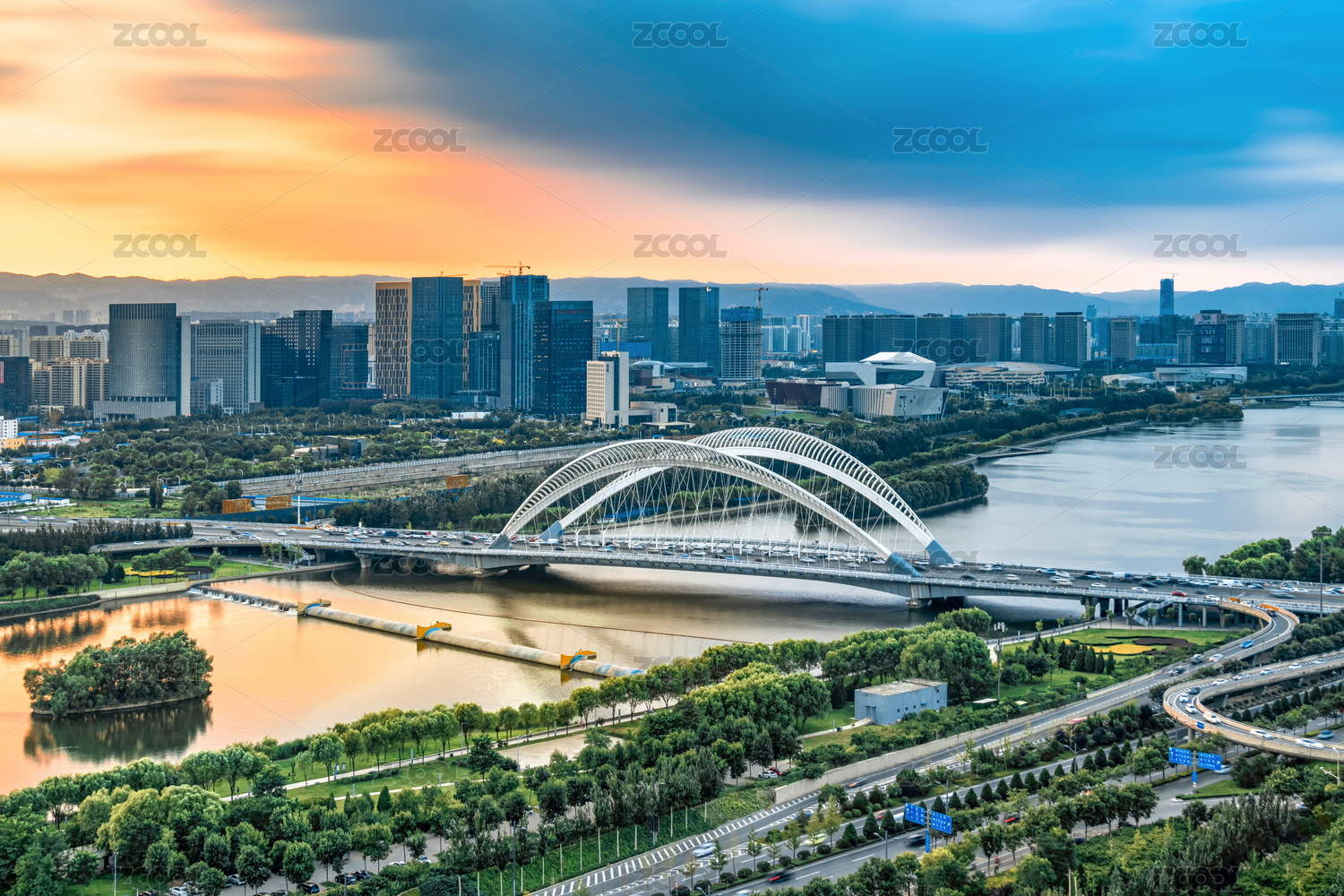 山東太原汾河兩岸自然建筑景觀汾河大橋