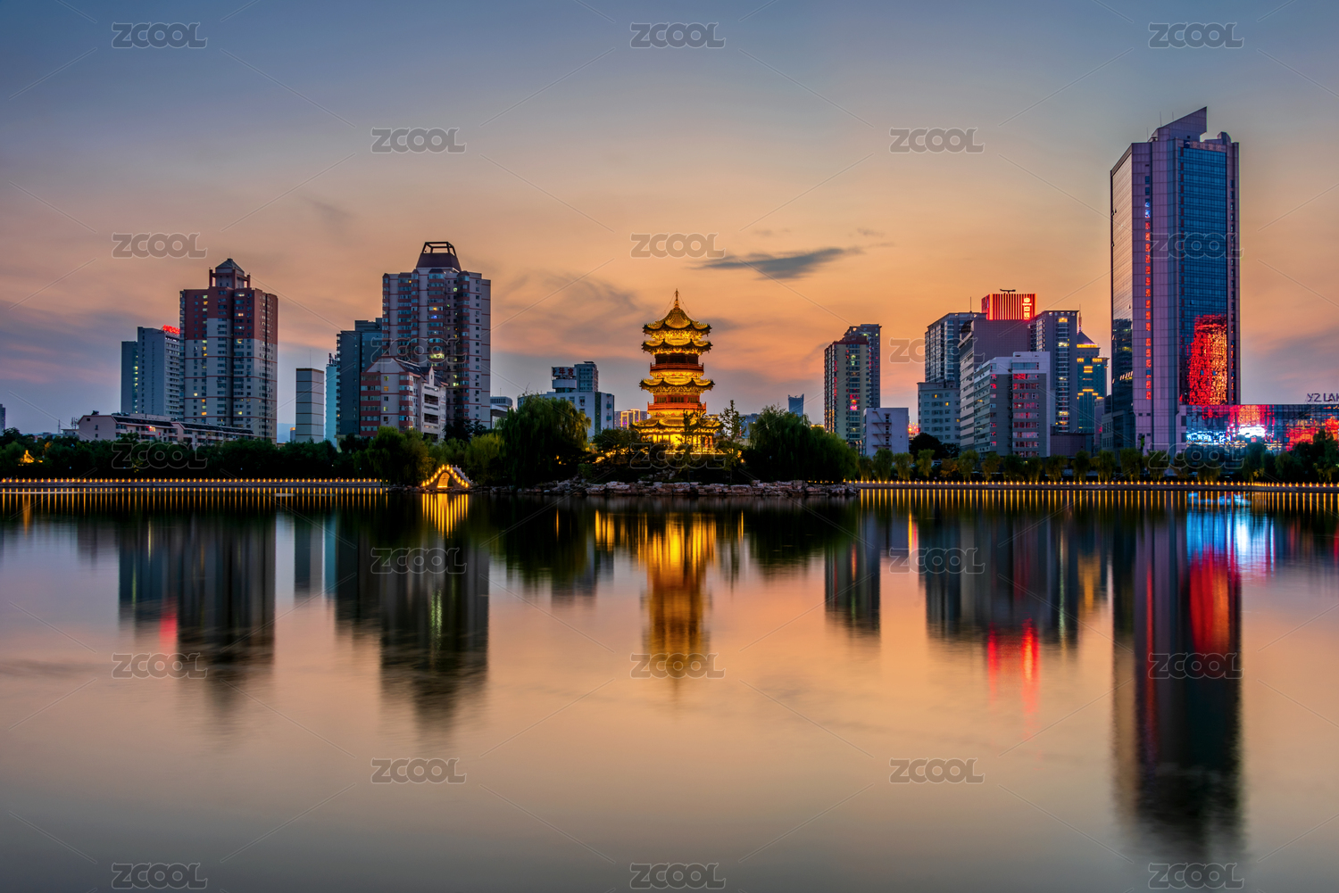 中國(guó)山西太原迎澤公園日暮風(fēng)光