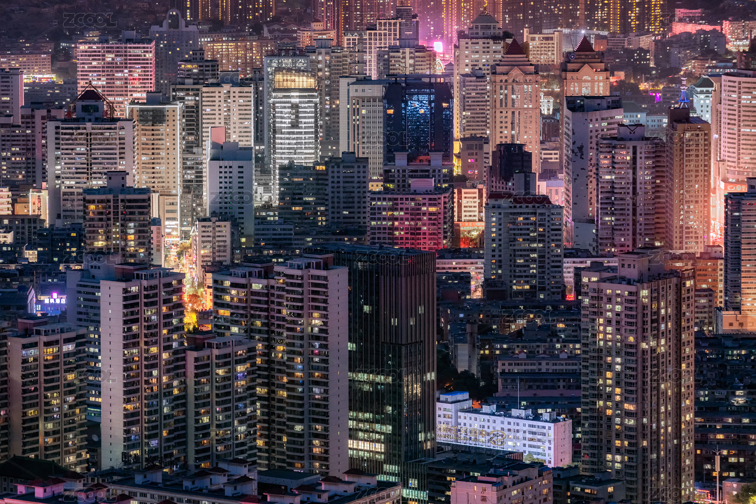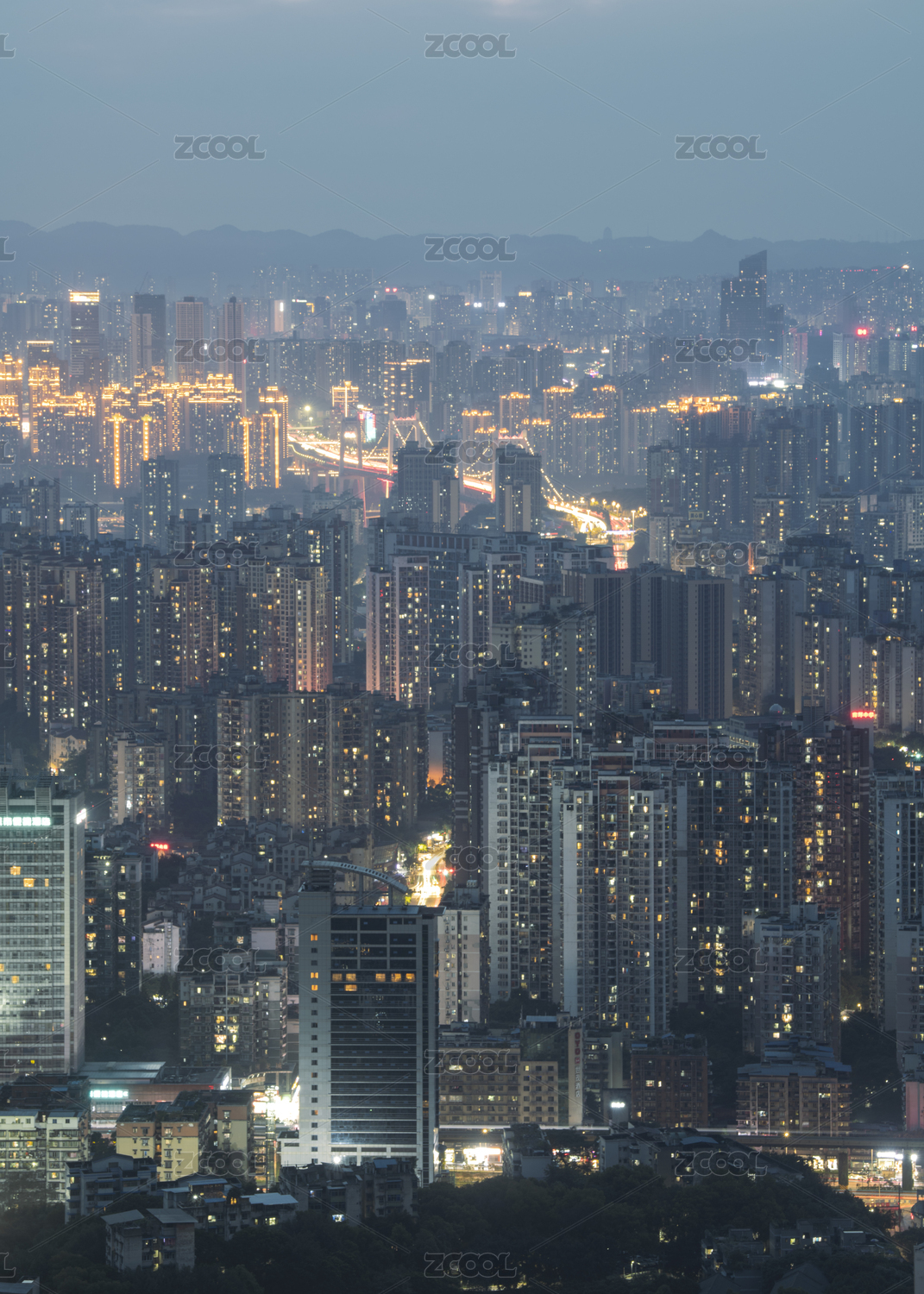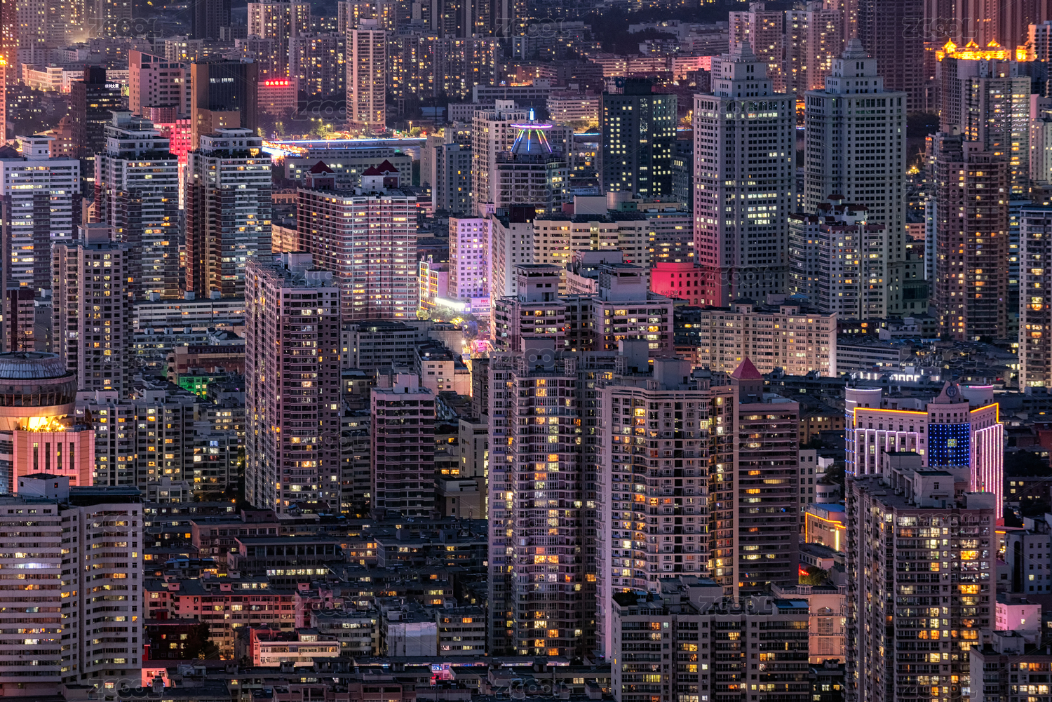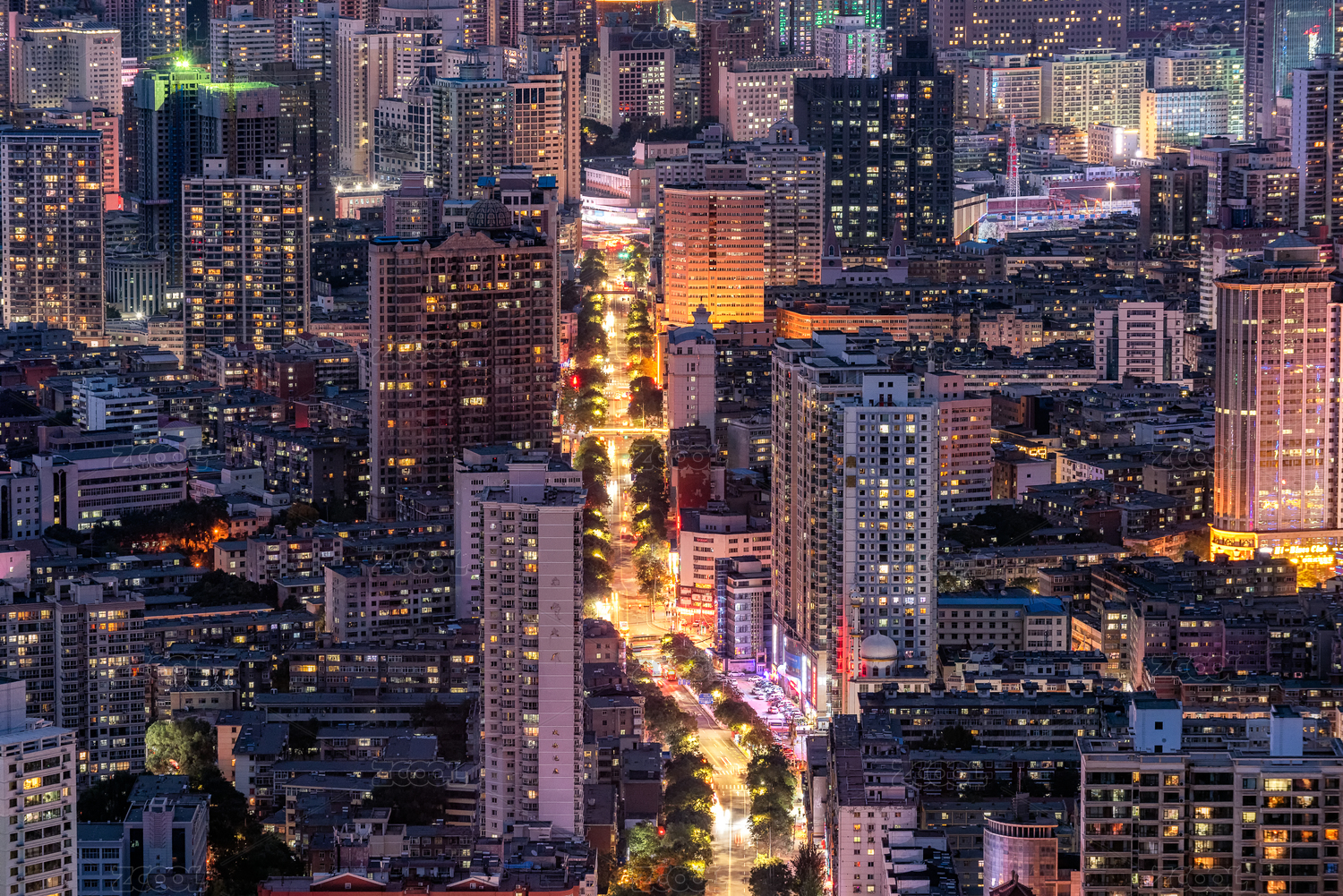 夜幕降臨時的城市萬家燈火