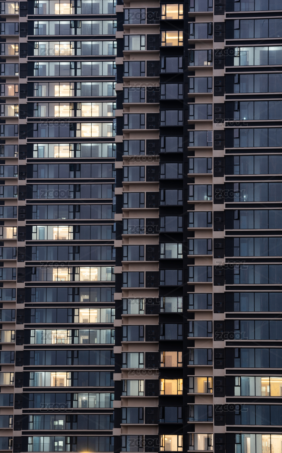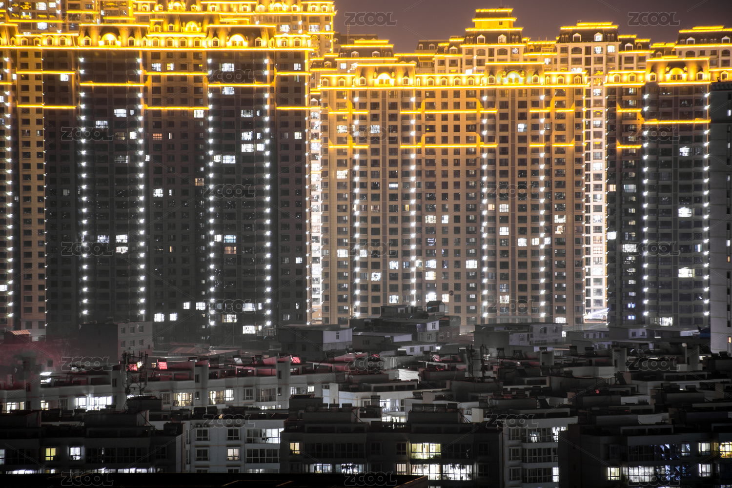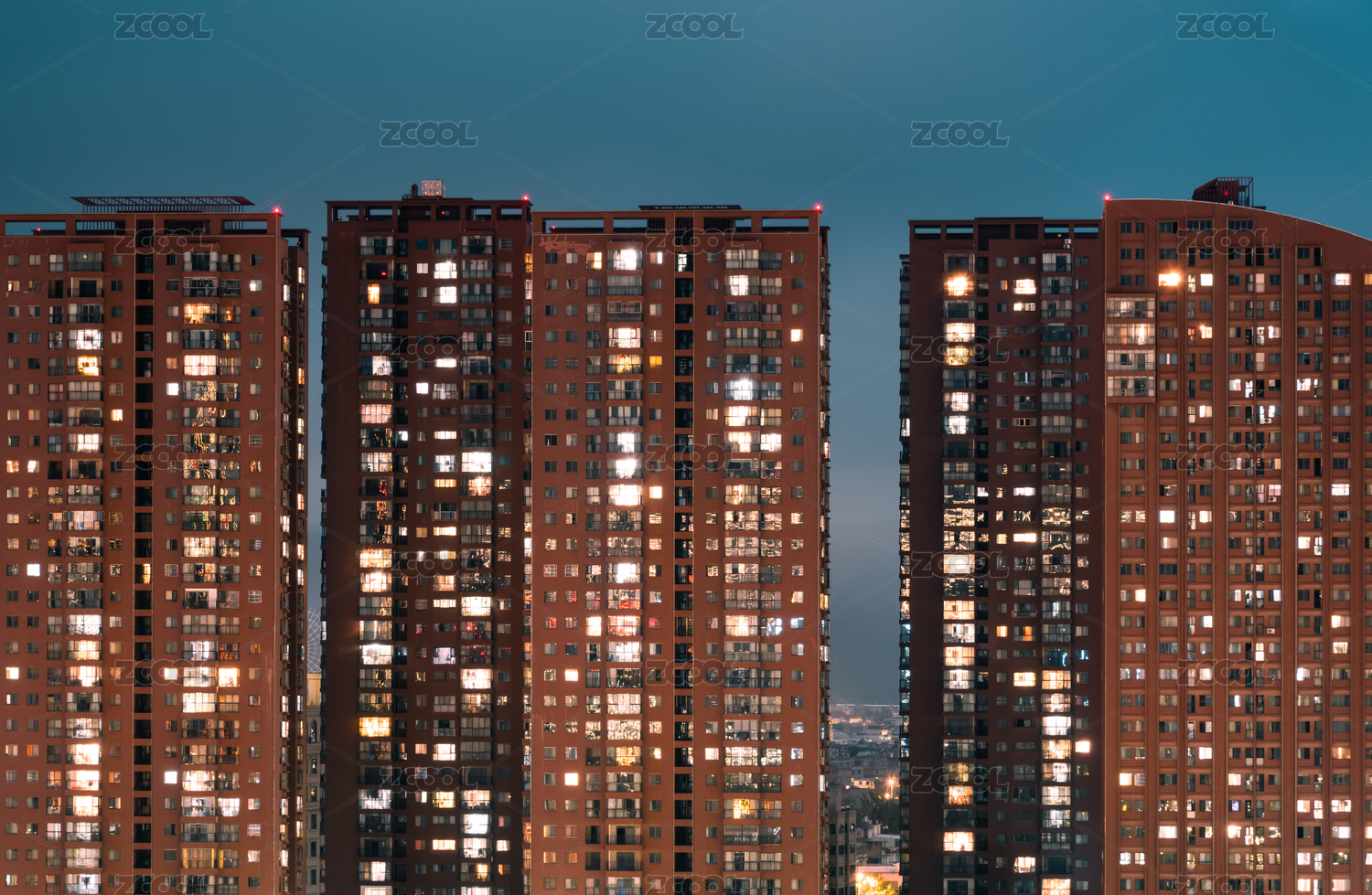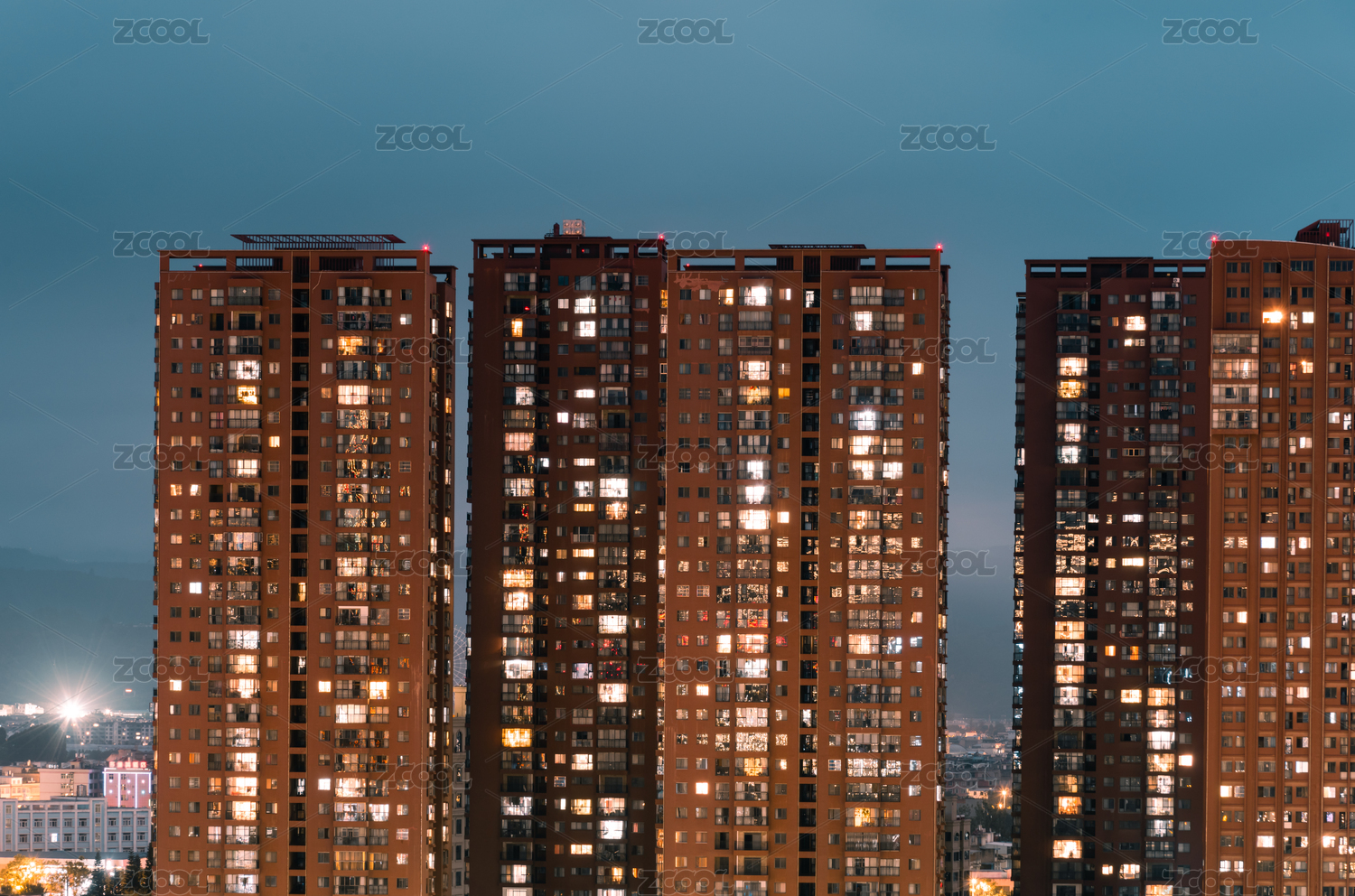 城市高層住宅夜晚點亮萬家燈火