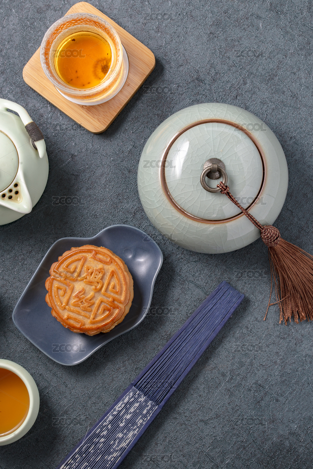 月餅茶壺茶杯及其他中式元素的規(guī)則擺放