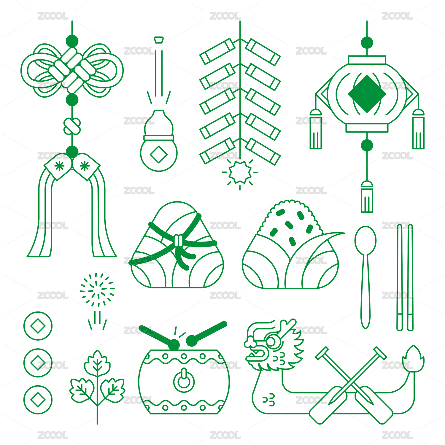 傳統(tǒng)節(jié)日端午節(jié)粽子龍舟燈籠中式元素合集