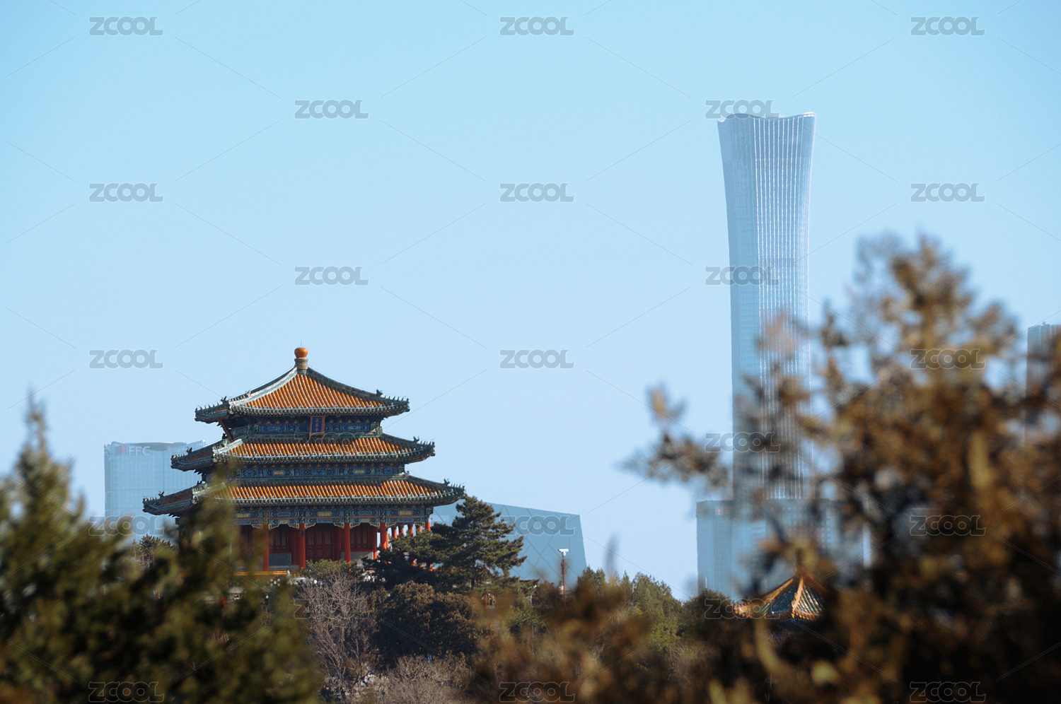 北京北海公園遠(yuǎn)眺(景山萬春亭和中信大廈)