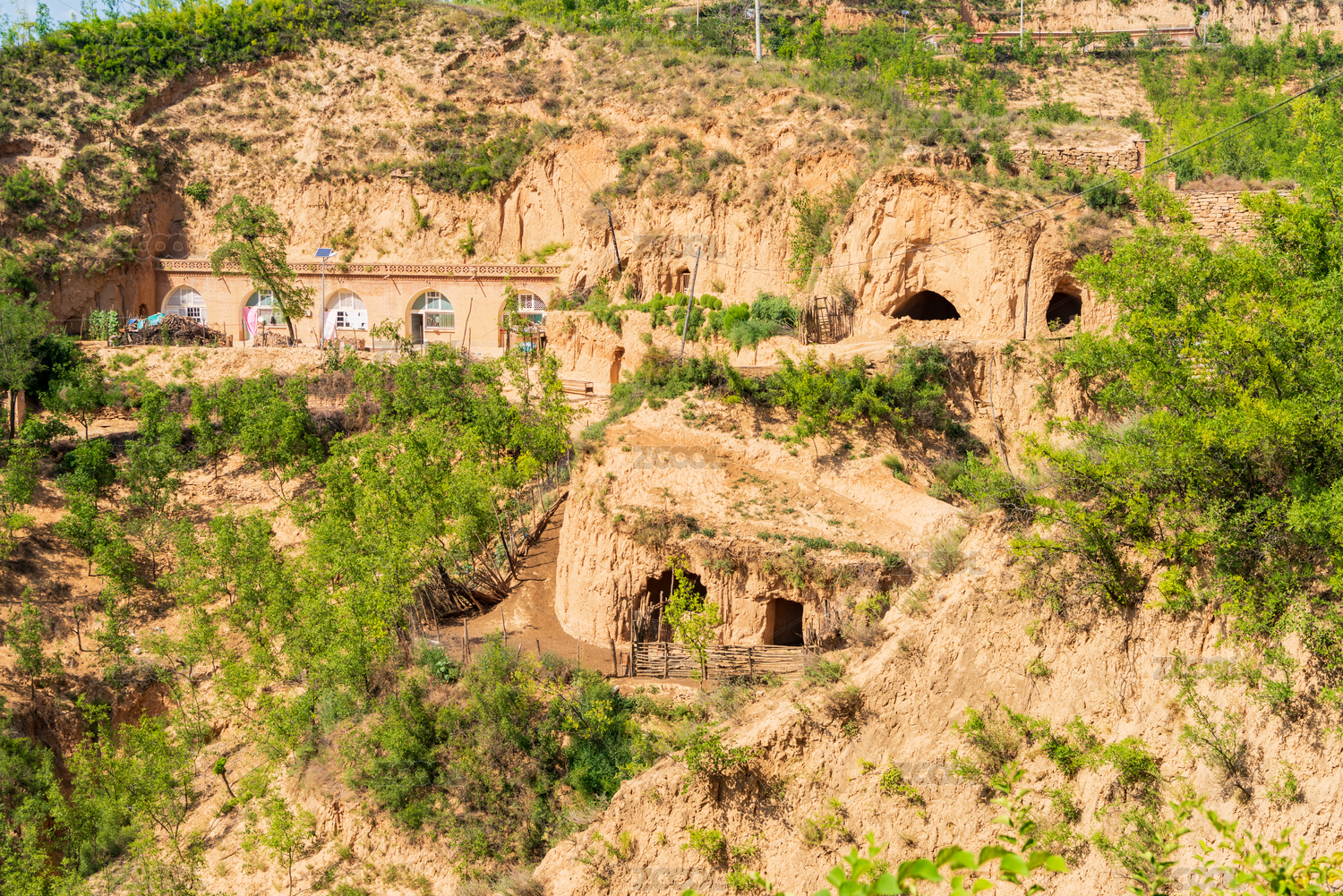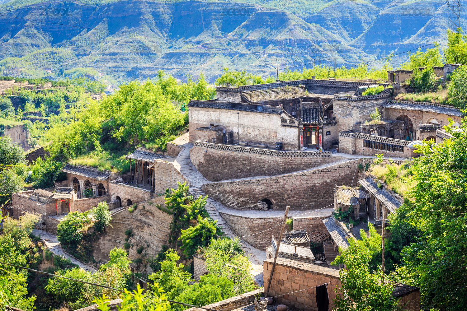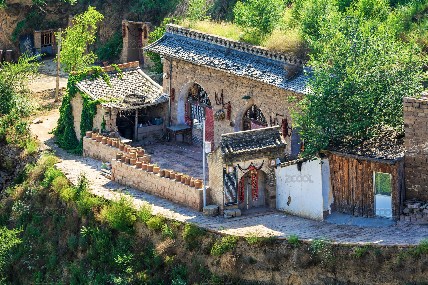 黃土高原窯洞民居小院,山西省臨縣李家山村
